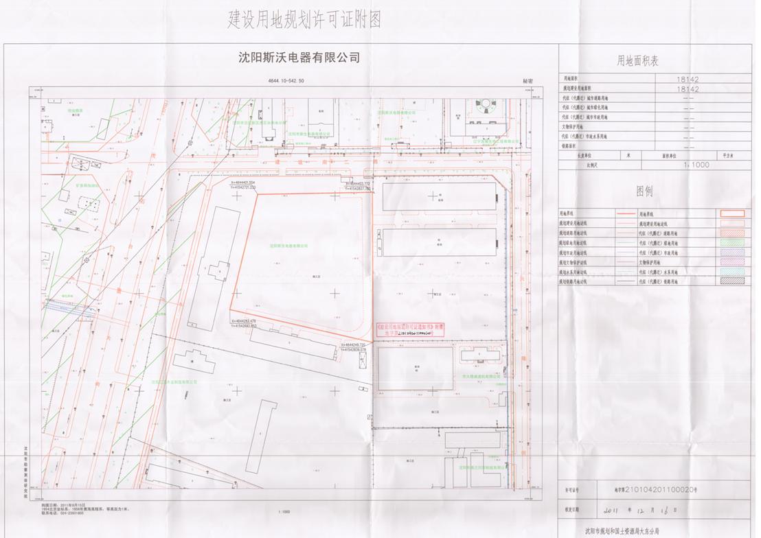 经沈阳市规划和国土资源局大东分局规划科审核,已对沈阳斯沃电器有限公司位于沈阳欧盟经济开发区蒲裕路23号的5#厂房项目核发了《建设用地规划许可证》公示如下: 建设用地规划许可证号:地字第210104201100020号 用地单位名称:沈阳斯沃电器有限公司 用地项目名称:5#厂房 用地项目地址:沈阳欧盟经济开发区蒲裕路23号(东至用地界线,西至用地界线,南至用地界线,北至用地界线)(后附图)