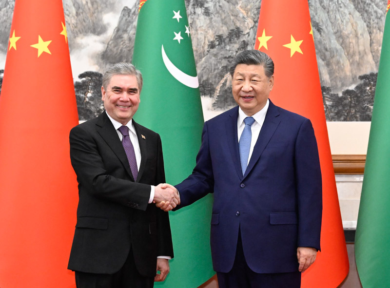 3月18日下午,国家主席习近平在北京钓鱼台国宾馆会见来华进行友好访问的土库曼斯坦民族领袖、人民委员会主席别尔德穆哈梅多夫。新华社记者 申宏 摄 新华社北京3月18日电(记者 冯歆然)3月18日下午,国家主席习近平在北京钓鱼台国宾馆会见来华进行友好访问的土库曼斯坦民族领袖、人民委员会主席别尔德穆哈梅多夫。 习近平指出,前不久中国全国两会成功召开,审查批准了“十五五”规划纲要。规划纲要的实施将为中国基本实现社会主义现代化奠定坚实基础,也将惠及世界各国。土库曼斯坦独立35年来,走出一条独立自主、符合自身国情的发展道路。马年伊始,中方愿同土方共商合作大计,共享发展机遇,推动中土命运共同体建设不断走深走实。 习近平强调,相互支持是中土全面战略伙伴关系的核心要义。无论国际形势如何变化,中方将始终支持土方维护国家独立、主权和领土完整,始终支持土方奉行永久中立政策,始终做土方值得信赖的合作伙伴。双方要加快推进共建“一带一路”倡议和“复兴丝绸之路”战略对接,扩大天然气领域合作规模,提升贸易和投资水平,拓展互联互通、农业、人工智能、数字经济、清洁能源等非资源领域合作,加快推进鲁班工坊、中医药中心、互设文化中心工作,打造全方位合作新格局。要坚决打击“三股势力”,为两国发展筑牢安全屏障。当前全球挑战层出不穷,中方愿同土方一道,坚定维护联合国地位和权威,践行真正的多边主义,坚持共商共建共享的全球治理观,以公平正义、开放包容理念引领全球治理变革。 3月18日下午,国家主席习近平在北京钓鱼台国宾馆会见来华进行友好访问的土库曼斯坦民族领袖、人民委员会主席别尔德穆哈梅多夫。新华社记者 翟健岚 摄 别尔德穆哈梅多夫表示,很高兴到访伟大的中国,祝贺中国全国两会成功举行,对各项事业发展作出重大决策部署。中国的繁荣发展使世界受益。中国好,世界会更好。在习近平主席亲自推动下,土中友好关系快速稳定发展,立法机构、党际交往密切,各领域合作内涵丰富,达到全面战略伙伴的高水平。土中合作已成为两国经济社会发展的重要积极因素,符合两国人民的长远利益。土方将一如既往恪守一个中国原则,愿同中方加强发展战略对接,拓展能源、贸易、互联互通等领域务实合作,共谋发展繁荣,共促安全稳定。土方感谢中方支持土库曼斯坦永久中立地位,高度评价习近平主席作为世界级领袖提出的四大全球倡议,赞赏中方在国际事务中一直秉持公正立场。土方愿同中方加强在联合国、中国-中亚机制等多边平台的协调配合,共同维护地区和世界的和平稳定。 3月18日下午,国家主席习近平在北京钓鱼台国宾馆会见来华进行友好访问的土库曼斯坦民族领袖、人民委员会主席别尔德穆哈梅多夫。这是习近平同别尔德穆哈梅多夫一起散步。新华社记者 申宏 摄 王毅参加会见。 |