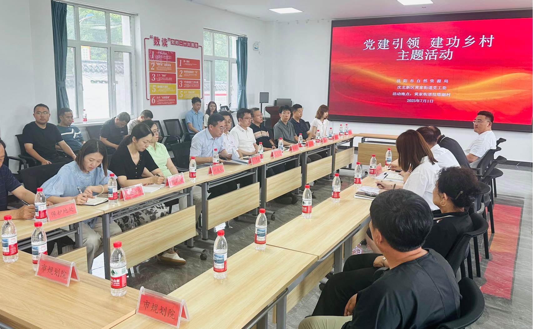 7月1日,在中国共产党成立104周年之际,我局积极响应深化农村改革、推进乡村全面振兴号召,与沈北新区黄家街道联合开展了深化“党建引领 建功乡村”主题党日活动,通过“理论联学、业务联动、平台联建”等举措,将党建与自然资源业务深度融合,着力推动黄家街道全域土地综合整治项目,为乡村振兴注入红色动能。 一、理论联学强根基,思想引领明方向 在拉塔湖村党群服务中心,专题学习习近平总书记关于“三农”工作的重要论述。由我局机关党委相关负责同志领学了中央农村工作会议精神,解读了《中共中央 国务院关于进一步深化农村改革 扎实推进乡村全面振兴的意见》《中共中央 国务院关于学习运用“千村示范、万村整治”工程经验有力有效推进乡村全面振兴的意见》等重要文件,特别阐述了自然资源领域职能与农村工作的紧密联系。我局相关党支部代表与黄家街道机关支部党员以及长河村、达连村、高坎村、拉塔湖村党支部书记共同学习,党员们纷纷认为此次在党的生日开展的理论学习,既强化了使命担当,又明确了服务乡村振兴的具体路径。