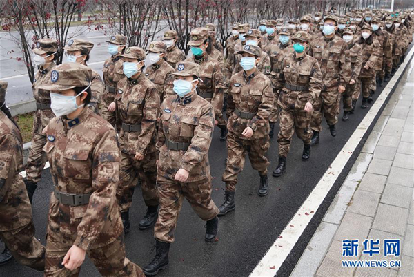 1月26日,陆军军医大学医疗队开始进驻武汉市金银潭医院。 新华社记者 程敏 摄 这次新冠肺炎疫情,是新中国成立以来在我国发生的传播速度最快、感染范围最广、防控难度最大的一次重大突发公共卫生事件。 生命重于泰山。习近平总书记强调,要把人民群众生命安全和身体健康放在第一位,坚决遏制疫情蔓延势头。 在抗击新冠肺炎疫情这场严峻的斗争中,各级党组织和广大党员、干部冲锋在前、英勇奋战,医务工作者和支援湖北医疗队员白衣执甲、逆行出征,人民解放军指战员闻令即动、勇挑重担,广大社区工作者、公安干警、基层干部、下沉干部、志愿者不惧风雨、坚守一线,广大群众众志成城、踊跃参与。 今天,在这场严峻斗争中淬炼出的精神,在中华民族精神谱系上再次写下浓墨重彩的一笔,不断汇聚起中华民族生生不息的磅礴力量。 这是万众一心向前进的中国精神——众志成城 舍生忘死