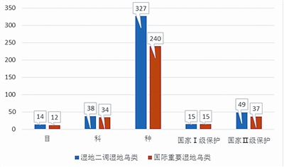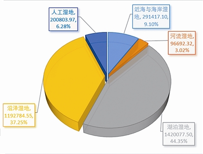 湿地与森林、海洋并称为全球三大生态系统。1公顷湿地生态系统每年创造的价值高达1.4万美元,是热带雨林的7倍,是农田生态系统的160倍。 我国高度重视湿地生态系统的安全。《中共中央 国务院关于加快推进生态文明建设的意见》把“湿地面积不低于8亿亩”列为2020年生态文明建设的主要目标之一。党的十八大报告提出“扩大森林、湖泊、湿地面积”,党的十九大报告提出“强化湿地保护和恢复”。 国家林业和草原局认真贯彻落实党中央、国务院有关要求,按照《国务院办公厅关于印发湿地保护修复制度方案的通知》关于“健全湿地监测评价体系”的要求,2018年局湿地管理司(中华人民共和国国际湿地公约履约办公室)对我国境内的国际重要湿地的生态状况进行了调查,并于日前发布了《中国国际重要湿地生态状况白皮书》,为我国国际重要湿地保护管理和履行《湿地公约》等工作提供了科学依据。 目前,我国加入国际湿地公约指定的国际重要湿地有57处,范围面积694万公顷,其中内地56处、香港1处。这次国际重要湿地生态状况调查范围为内地的56处国际重要湿地,范围面积662.38万公顷,湿地面积320.18万公顷。 这次调查,通过现地调查验证和资料查阅收集的方法,调查了国际重要湿地的面积、水源补给、水质、富营养化、湿地植物及植被、湿地鸟类、外来入侵物种、湿地利用、主要威胁等9方面指标。结果显示,我国国际重要湿地总体生态状况良好。 湿地面积 我国内地的56处国际重要湿地分布在21个省(区、市),范围面积662.38万公顷,湿地面积为320.18万公顷,湿地面积占国际重要湿地范围面积的48.34%。其中,自然湿地面积为300.10万公顷,占湿地面积的93.72%;人工湿地面积为20.08万公顷,占湿地面积的6.28%。 图1:中国国际重要湿地的分类面积(单位:公顷) 按照分类统计,56处国际重要湿地中,内陆湿地41处,范围面积596.86万公顷,占90.90%;近海与海岸湿地为15处,范围面积65.52万公顷,占9.10%(图1)。 水源补给状况 我国内地56处国际重要湿地中,位于江河源头区域的湿地有11处,位于河口区域的湿地有10处,采取人工补水措施的湿地有5处。 2014年-2017年,大部分国际重要湿地所在区域降雨量保持稳定,降水量呈明显下降趋势的有内蒙古鄂尔多斯、黑龙江兴凯湖、内蒙古达赉湖等国际重要湿地所在区域,降水量呈明显上升趋势的有黑龙江洪河、湖北洪湖、湖北网湖等国际重要湿地所在区域。其中,内蒙古鄂尔多斯、内蒙古达赉湖湿地区域采取了人工补水措施,水域保持稳定;三江源区域的青海鄂陵湖、青海扎陵湖,东北林区的内蒙古汗马、黑龙江南瓮河、黑龙江东方红、黑龙江珍宝岛等湿地均位于江河源头,汇流河流水量稳定;湖南西洞庭湖、湖南南洞庭湖、湖南东洞庭湖、江西鄱阳湖、湖北网湖、安徽升金湖、黑龙江三江等湿地位于内陆水域,汇水区水量保持稳定,但枯水季存留水无法得到有效保障;辽宁双台河口、山东黄河三角洲、上海崇明东滩、江苏盐城、广西山口红树林、福建漳江口红树林、海南东寨港等湿地位于近海河口水域,除山东黄河三角洲湿地需要从黄河补充淡水外,其他湿地的河流汇水和海水顶托保持稳定。 水质状况 我国内地56处国际重要湿地中,51处获取了地表水水质数据,其中水质为Ⅰ类水1处,Ⅱ类水11处,Ⅲ类水18处,Ⅳ类水13处,Ⅴ类水4处。4处海域中,Ⅰ类海水、Ⅱ类海水各2处。调查显示:Ⅲ类水比重最大,并分别向优、劣方面依次递减,呈现正态分布特征。 图2:中国国际重要湿地地表水水质比例 2014年-2017年,56处国际重要湿地的水质状况基本保持稳定。黑龙江南瓮河水质最佳,为Ⅰ类水,湖北大九湖、云南纳帕海、海南东寨港等湿地水质有好转趋势;内蒙古达赉湖、黑龙江七星河、湖北沉湖、湖北网湖水质为Ⅴ类水,内蒙古达赉湖水循环能力较差,黑龙江七星河部分水质指标超标严重,其他水质指标优良,貉藻生长面积在逐年增加;湖南洞庭湖区、辽宁双台河口等汇水区水质偏差;湖北网湖、黑龙江扎龙、吉林莫莫格、安徽升金湖等汇水区域水质明显差于输入河道水质,表明这些区域受面源污染影响明显(图2)。 水体富营养化状况 我国内地56处国际重要湿地中,49处获取了水体富营养化数据,其中贫营养的有12处,中营养的有27处,富营养的有10处(图3)。 图3:中国国际重要湿地水体富营养化状况 湿地植物 我国内地56处国际重要湿地中,湿地植物约有187科811属2114种,分别占全国湿地植物科、属、种数的78.24%、64.62%和50.09%。其中苔藓植物42种,隶属于31属,21科;蕨类植物65种,隶属于39属,28科;裸子植物7种,隶属于4属,2科;被子植物2000种,隶属于737属,136科。 图4:中国国际重要湿地湿地植被覆盖率比例 湿地植被覆盖率较高的有内蒙古汗马、黑龙江七星河、黑龙江友好、黑龙江东方红、黑龙江南瓮河、黑龙江三江、吉林哈尼、甘肃尕海等国际重要湿地,湿地植被覆盖率均达到95%左右(图4)。 湿地鸟类 我国内地56处国际重要湿地中,记录有湿地鸟类12目34科240种,占我国湿地鸟类种数的73.39%。其中,国家Ⅰ级重点保护鸟类15种,国家Ⅱ级重点保护鸟类37种(图5)。 图5:中国国际重要湿地湿地鸟类分布状况 外来物种入侵状况 互花米草是入侵近海与海岸类型国际重要湿地的主要外来物种。上海崇明东滩为互花米草入侵治理提供了样板,通过围堤、刈割、晒地、定植、调水等措施,有效改