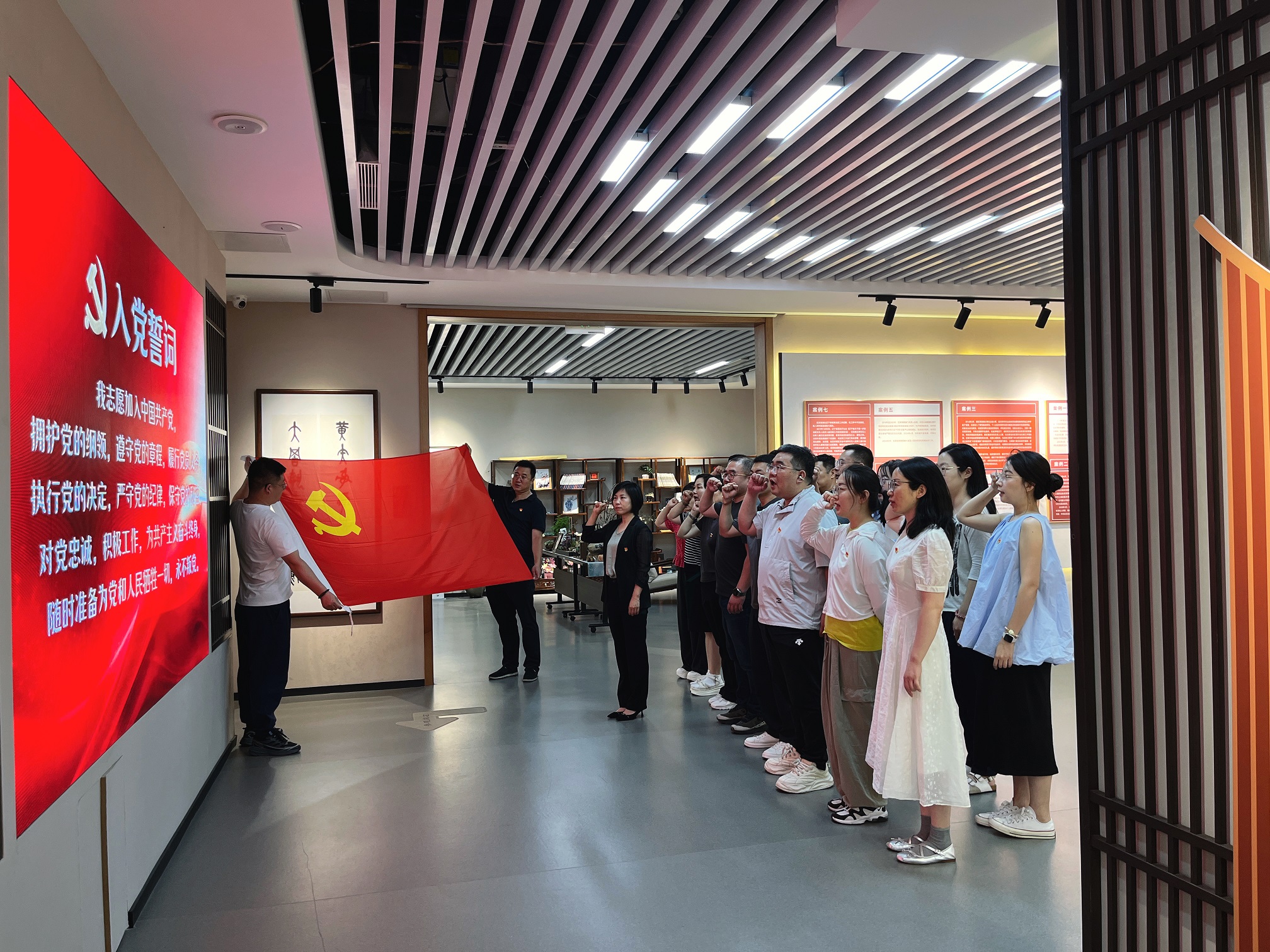 在“廉心雅苑”内,党员干部在讲解员的引导下,依次参观了“廉脉相承——中华优秀传统廉洁文化展”“沈阳市大东区深入贯彻中央八项规定精神学习教育警示教育展”两个展厅。馆内详实的史料、生动的案例以及现代化的展示手段,让大家深入了解从古至今廉洁文化的发展脉络,深刻领会到国家在反腐倡廉工作上的坚定决心和显著成果。展厅紧扣中央八项规定及其实施细则精神,结合相关制度规定,全景式展现中央八项规定精神落地生根的坚实足迹。特别是真实案例的情景还原、违纪事实的深度剖析,让党员干部们深受触动,进一步增强了党性修养、法纪意识以及廉洁自律的自觉性。在现场教学中,全体党员面向党旗,重温入党誓词,重忆入党初心,进一步强化党员意识,推动党员将初心转化为遵规守纪、服务群众的生动实践,为推动各项工作有力完成提供坚强保障。