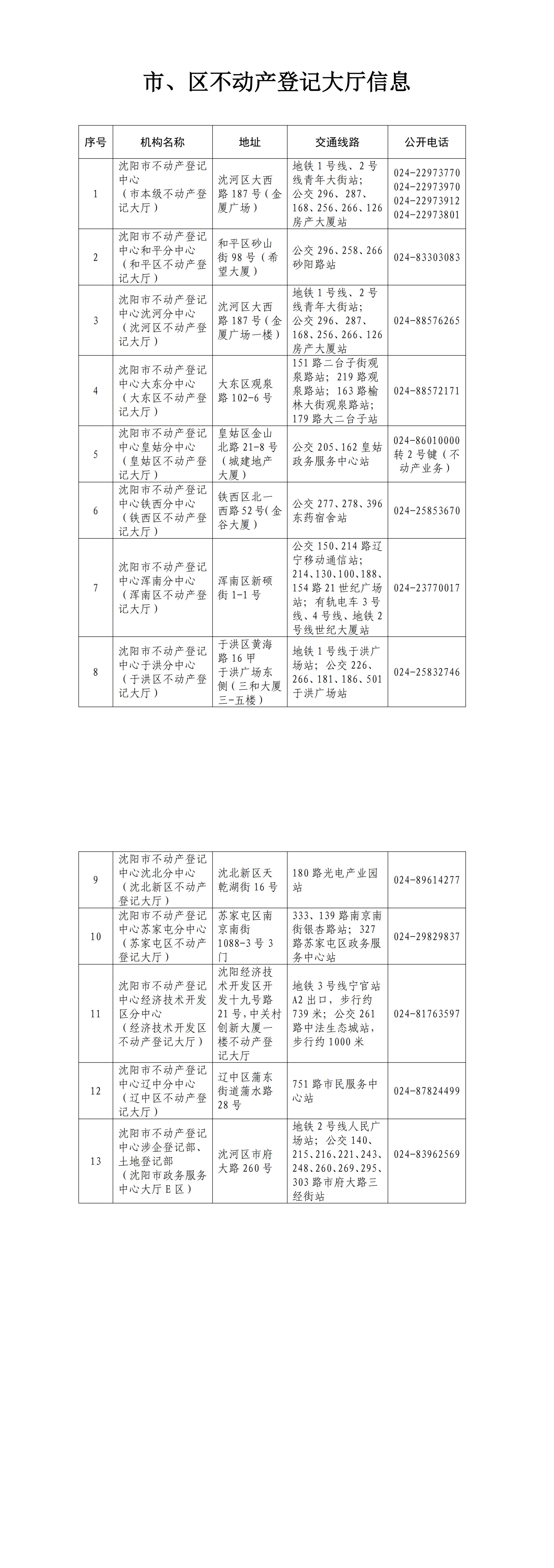 市、区不动产登记大厅信息