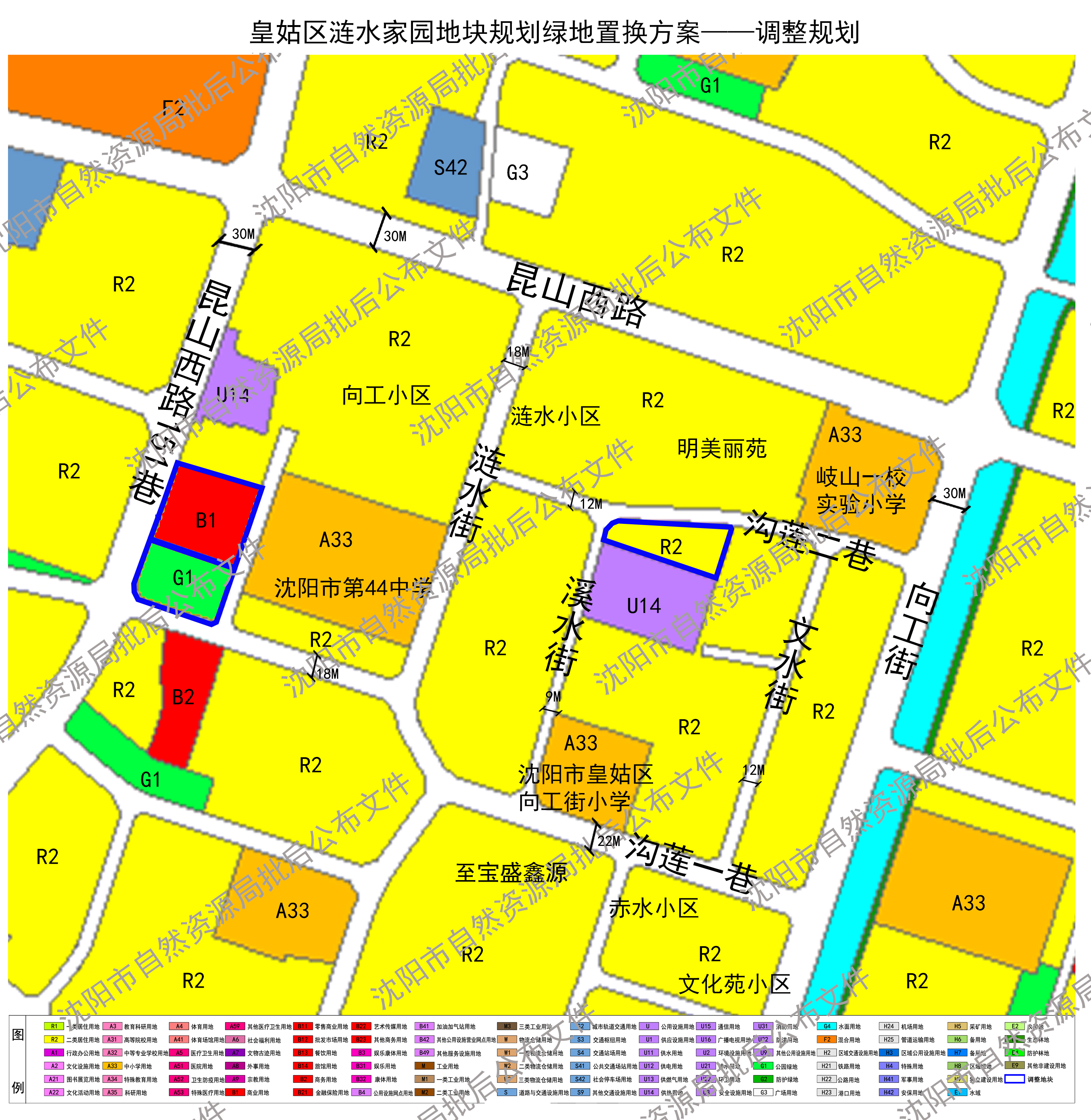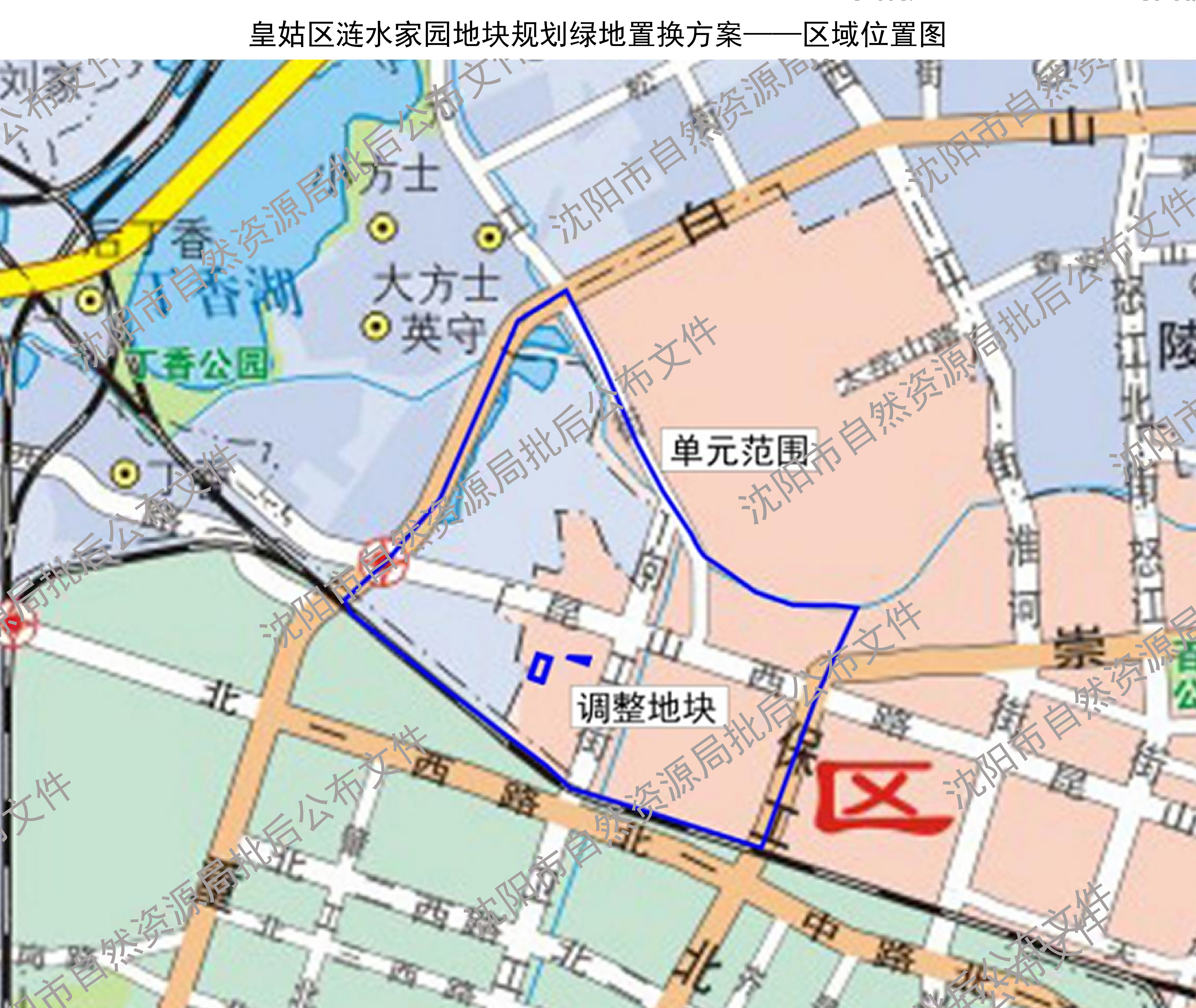 规划简要内容 一、单元范围:东至塔湾街、南至沈山铁路、西至白山路、北至沈马公路、新开河,规划面积约481.8公顷。 二、地块范围:东、南至用地界限,西至溪水街、北至沟莲二巷,用地面积约0.35公顷。 三、调整内容:为解决历史遗留问题,经皇姑区人民政府申请,将涟水家园地块用地性质由公园绿地调整为居住用地,同时将四十四中学西地块(约0.35公顷)用地性质由居住用地调整为公园绿地。并结合区域设施补短板需求,将44中学西北侧地块(约0.46公顷)用地性质由居住用地调整为商业设施用地(邻里中心)。 四、本公示文件的解释权归属沈阳市自然资源局。