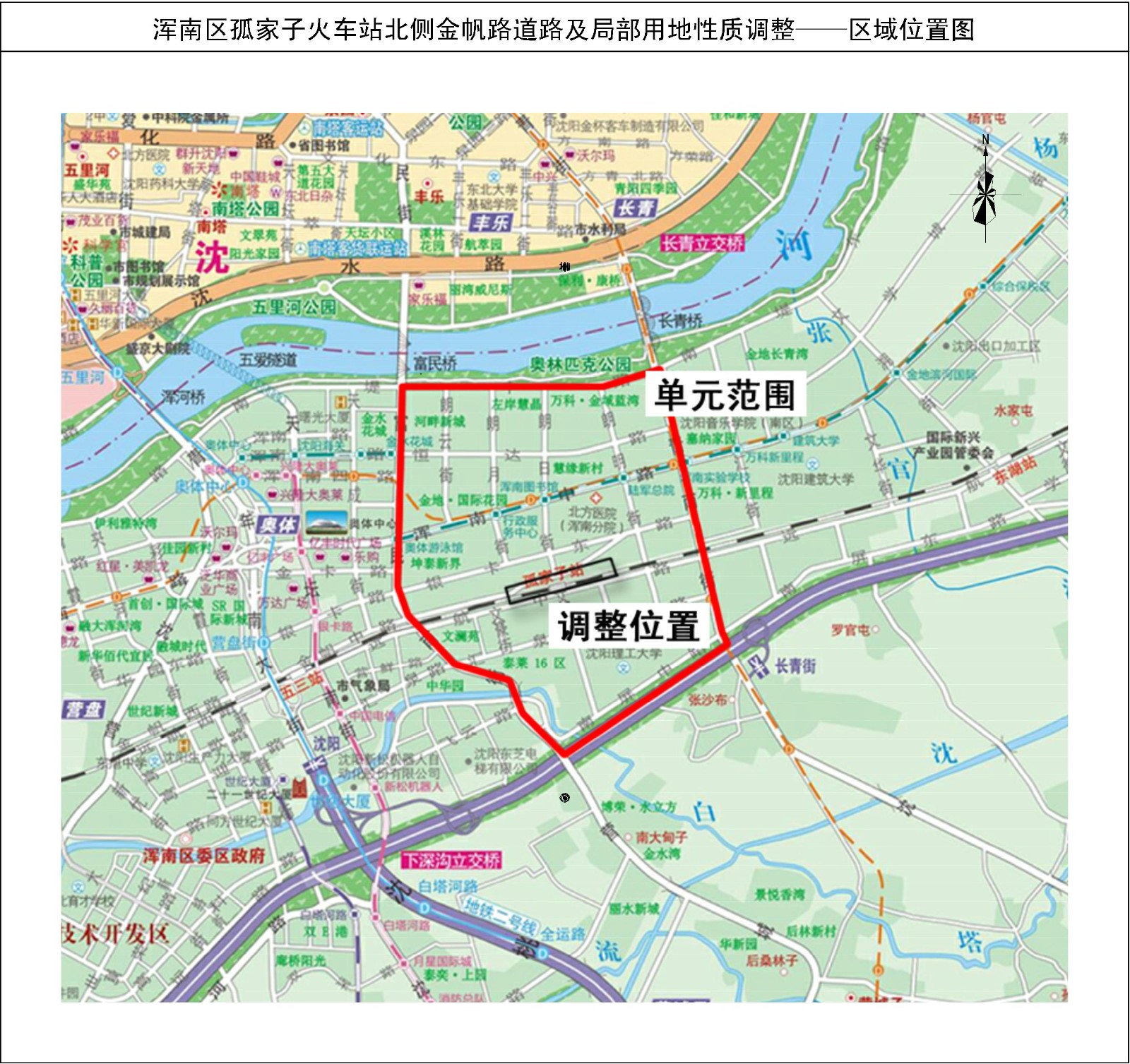 浑南区孤家子火车站北侧金帆路道路及局部用地性质调整规划方案批前公示