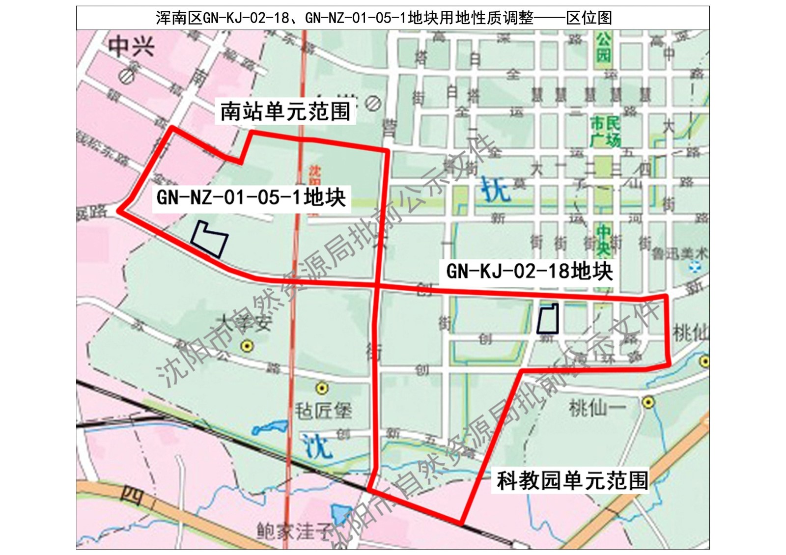按照《中华人民共和国城乡规划法》及相关法律、法规要求,将浑南区GN-KJ-02-18、GN-NZ-01-05-1地块用地性质调整进行批前公示。地块分别位于科教园和南站控规单元,两个控规单元于2019年9月获得了市政府批准,现就规划调整事宜征询公众意见。公示时间为30日(自2021年01月05日至2021年02月03日)。在此期间,如有意见或建议可通过以下途径参与,并注明联系人及具体联系方式。利害关系人对该规划调整依法享有陈述、申辩以及申请听证等权利,逾期视为放弃上述权利。 1.咨询电话:024-24821934(沈阳市自然资源局浑南分局)。 2.信函:请邮寄至沈阳市浑南区世纪路15号,沈阳市自然资源局浑南分局收,邮编:110000。 3.电子邮件:hnfjghk@163.com