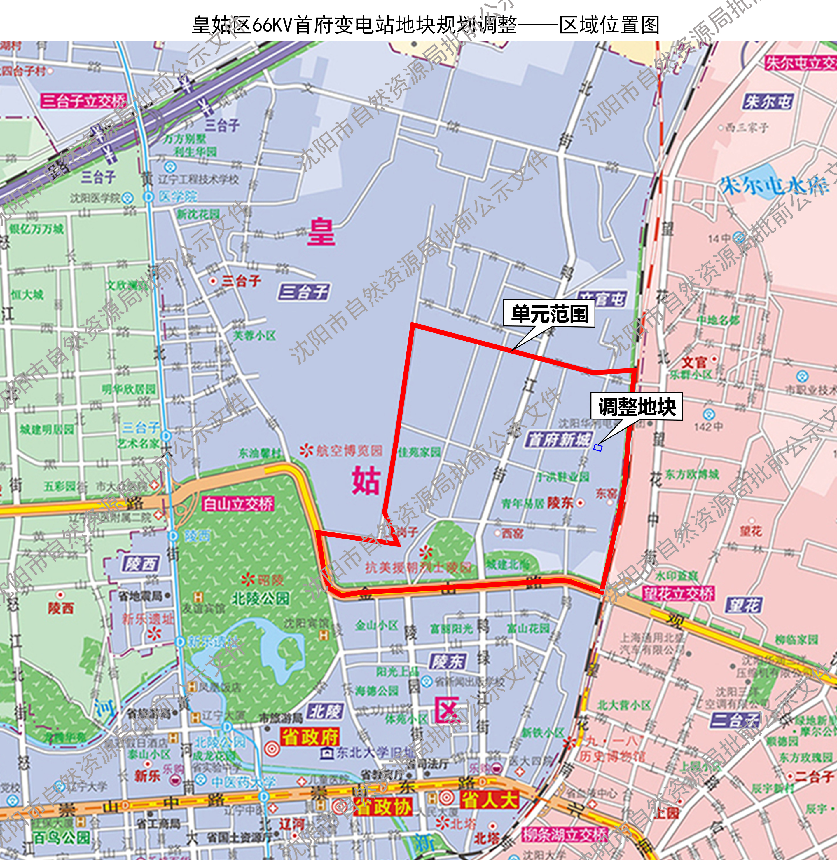 皇姑区66kV首府变电站地块位于《中心城区陵园单元控制性详细规划》(编号DNLY),该规划于2015年7月通过市规委会审议。按照《中华人民共和国城乡规划法》及相关法律、法规要求,现将该地块规划调整进行批前公示,征询公众意见,公示时间为30日(自2023年8月25日至2023年9月23日)。在此期间如有意见或建议可通过以下途径参与,并注明联系人及具体联系方式。利害关系人对该规划依法享有陈述、申辩以及申请听证等权利,逾期视为放弃上述权利。 1.电子邮件:hgxzspk-zrzyj@shenyang.gov.cn(沈阳市自然资源局皇姑分局) 2.传真:86216100(沈阳市自然资源局皇姑分局) 3.信函:请邮寄至沈阳市皇姑区金山北路21-8号皇姑区政务服务中心,沈阳市自然资源局皇姑分局收,邮编:110032