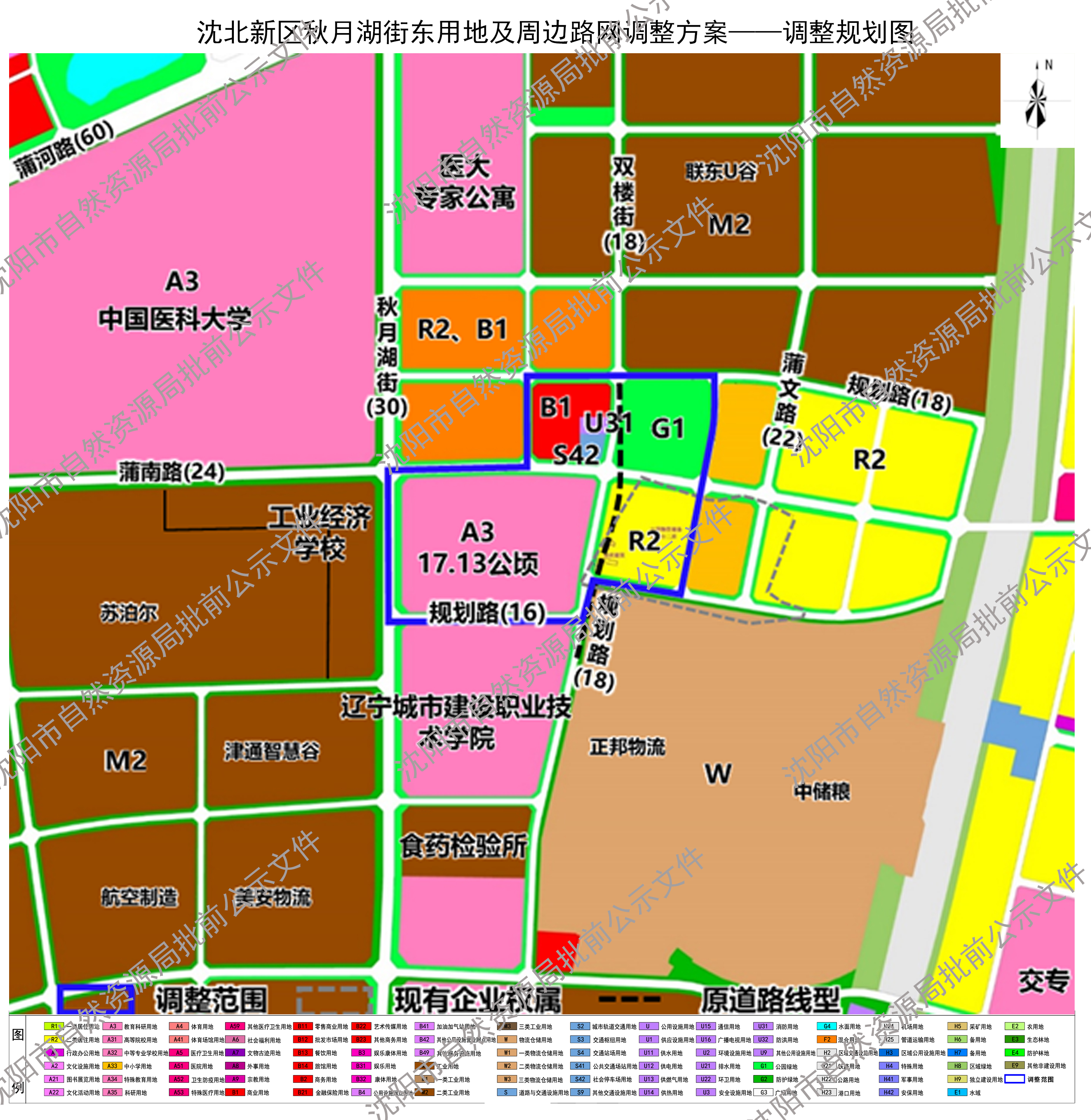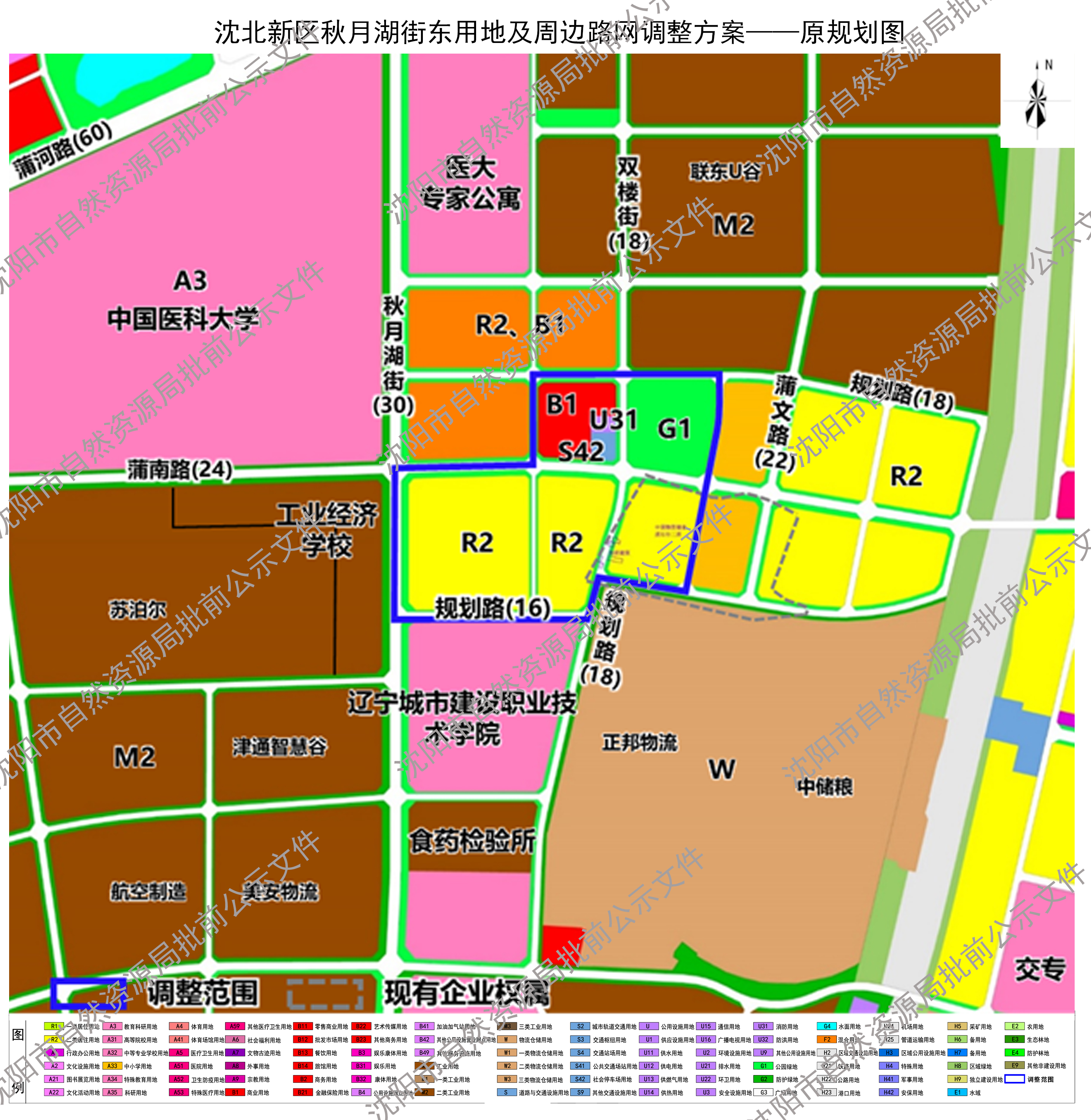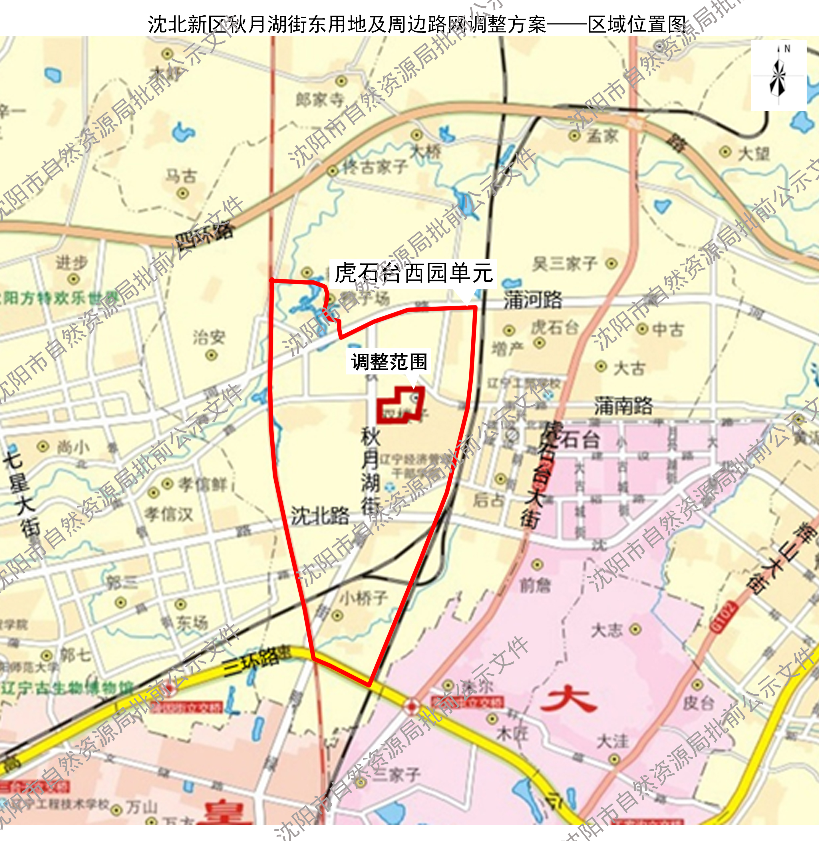沈北新区秋月湖街东用地及周边路网调整批前公示