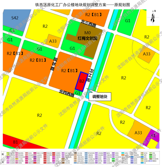 铁西区原化工厂办公楼地块位于《沈阳市中心城区启工北单元控制性详细规划》(ENQG),该规划于2018年7月通过市政府批准。按照《中华人民共和国城乡规划法》及相关法律、法规要求,现将该地块规划调整进行批前公示,征询公众意见,公示时间为30日(自2025年10月31日至2025年11月29日)。在此期间如有意见或建议可通过以下途径参与,并注明联系人及具体联系方式。利害关系人对该规划依法享有陈述、申辩以及申请听证等权利,逾期视为放弃上述权利。 1.电子邮件:txxzspk-zrzyj@shenyang.gov.cn 2.传真:024-85866997(沈阳市自然资源局铁西分局) 3.信函:请邮寄至铁西区北一西路52号铁西区政务服务中心A座605室,沈阳市自然资源局铁西分局收,邮编:110078 沈阳市自然资源局 2025年10月31日 规划简要内容 一、地块范围:调整地块位于铁西区红梅文创园以南,卫工街西侧,北四西路北侧,启工北控规单元内。用地面积约0.83公顷。 二、调整内容:该地块项目为城市更新项目,现状为腾讯数字产业基地,业态主要为创新型产业,为支持培育片区发展新经济、新产业、新业态,以高品质空间吸引创新要素快速集聚,加快促进片区生活圈“生产、生活、生态”融合发展,铁西区提出本次规划调整申请。拟将0.83公顷商务用地(B2)调整为商务用地兼容创新型产业用地(B2/M0)。 三、本公示文件的解释权归属沈阳市自然资源局。