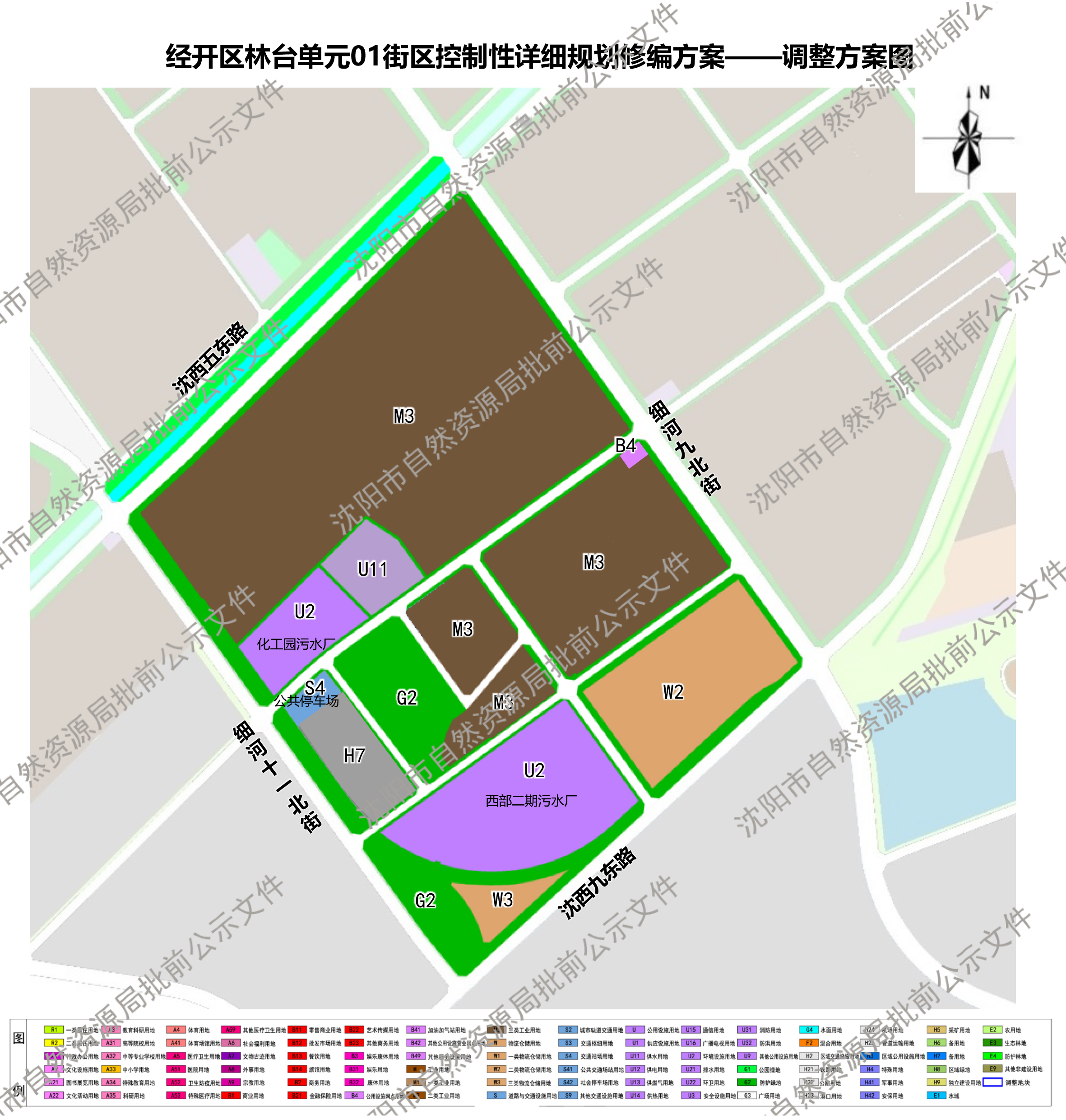 《沈阳市中心城区林台单元控制性详细规划》(单元编号:ENLT),该规划于2020年1月通过市政府批准。按照《中华人民共和国城乡规划法》及相关法律、法规要求,现将该单元01街区控制性详细规划修编方案进行批前公示,征询公众意见,公示时间为30日(自2025年11月28日至2025年12月27日)。在此期间如有意见或建议可通过以下途径参与,并注明联系人及具体联系方式。利害关系人对该规划依法享有陈述、申辩以及申请听证等权利,逾期视为放弃上述权利。 1.咨询电话:25373279(沈阳市自然资源局经济技术开发区分局) 2.信函:请邮寄至沈阳经济技术开发区中央大街27号 沈阳市自然资源局经济技术开发区分局规划科收,邮编:114012 3.电子邮件: zrzyjkfjghk-txq@shenyang.gov.cn 沈阳市自然资源局 2025年11月28日 规划简要内容 一、规划范围:东至细河九北街、南至沈西九东路、西至细河十一北街、北至沈西五东路,用地面积约3.2平方公里。 二、用地方案: 结合化工园再生水厂和绿地工程项目两处建设项目,优化街区内规划用地方案:污水厂东侧的再生水厂项目用地由三类工业用地调整为供水用地(U11),并在地块周边控制10米防护绿带;将污水厂南侧的绿地工程项目用地规划为防护绿地(G2),项目西侧增设22米宽规划路、东侧增设18米宽规划路向南延伸至普利司通北侧现状路,项目东侧原预留地规划为三类工业用地(M3),西侧原预留地不变;原公共停车场向西调整,取消街区内原环境设施用地。 三、五线控制:红线控制包括细河九北街、沈西六东路、沈西九东路和细河十一北街等主干路,沈西十一东路和细河十北街两条次干路,其他为支路;绿线控制包括公园绿地、防护绿地。黄线控制包括污水厂、再生水厂等。蓝线控制为片区内浑蒲灌渠水面。 四、本公布文件的解释权归属沈阳市自然资源局。