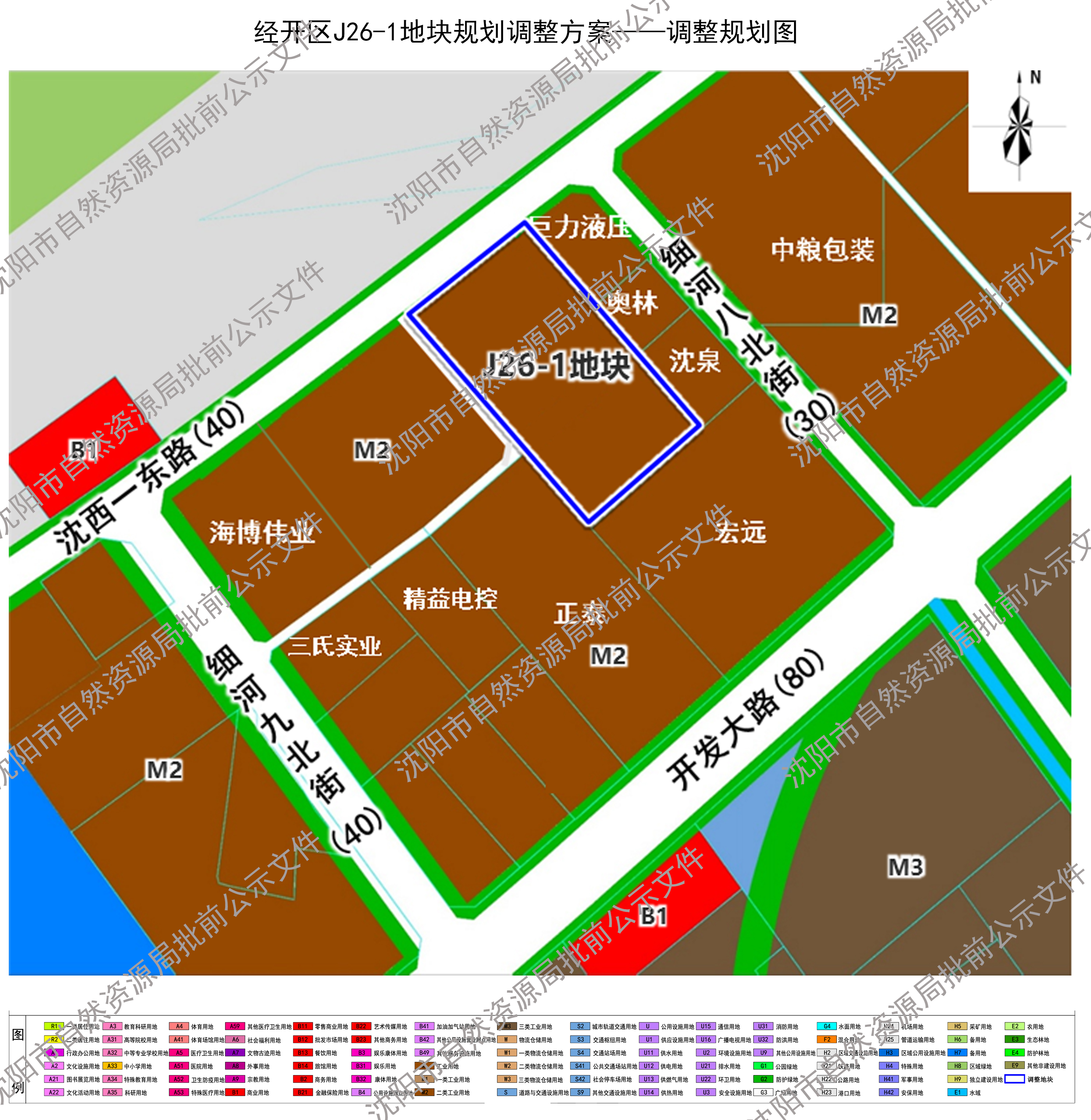按照《中华人民共和国城乡规划法》及相关法律、法规要求,现将经开区J26-1地块规划调整方案进行批前公示,征询公众意见。公示时间为30天(自2026年1月16日至2026年2月14日)。在此期间,如有意见或建议可通过以下途径参与,并注明联系人及具体联系方式。利害关系人对该规划依法享有陈述、申辩以及申请听证等权利,逾期视为放弃上述权利。 1.咨询电话:25373279(沈阳市自然资源局经济技术开发区分局) 2.信函:请邮寄至沈阳经济技术开发区中央大街27号 沈阳市自然资源局经济技术开发区分局规划管制科收,邮编:110000 3.电子邮件: zrzyjkfjghk-txq@shenyang.gov.cn 沈阳市自然资源局 2026年1月16日 规划简要内容 一、调整范围:拟调整道路位于沈西一东路南侧、细河八北街西侧,位于经开区J26-1地块范围内。 二、调整方案:为保障用地完整性,经开区申请结合意向项目扩建需求及周边企业权属,取消沈西一东路南侧、细河九北街东侧部分12米规划路(至J26-1地块西侧边界),同时在地块范围西侧边界增加18米规划路。 三、本公示文件的解释权归属沈阳市自然资源局。