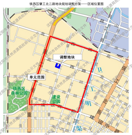 铁西区肇工北二路地块位于《沈阳市中心城区启工北单元控制性详细规划》(ENQG),该规划于2018年7月通过市政府批准。按照《中华人民共和国城乡规划法》及相关法律、法规要求,现将该地块规划调整进行批前公示,征询公众意见,公示时间为30日(自2026年2月6日至2026年3月7日)。在此期间如有意见或建议可通过以下途径参与,并注明联系人及具体联系方式。利害关系人对该规划依法享有陈述、申辩以及申请听证等权利,逾期视为放弃上述权利。 1.电子邮件:txxzspk-zrzyj@shenyang.gov.cn 2.传真:024-85866997(沈阳市自然资源局铁西分局) 3.信函:请邮寄至铁西区北一西路52号铁西区政务服务中心A座605室,沈阳市自然资源局铁西分局收,邮编:110078 沈阳市自然资源局 2026年2月6日 规划简要内容 一、地块范围:启工北单元规划范围东至卫工街,西至重工街,南至建设大路,北至北一路,总用地面积447.3公顷。 二、调整内容:为了落实沈阳市中小学布局规划方案的规划要求,保证详细规划与专项规划一致,提高教育资源的空间供给,铁西区提出本次规划调整申请。拟将1.31公顷商业用地(B2)、1.32公顷二类居住用地(R2)调整为2.51公顷中小学用地(A33)、0.12公顷防护绿地(G2)。 三、本公示文件的解释权归属沈阳市自然资源局。