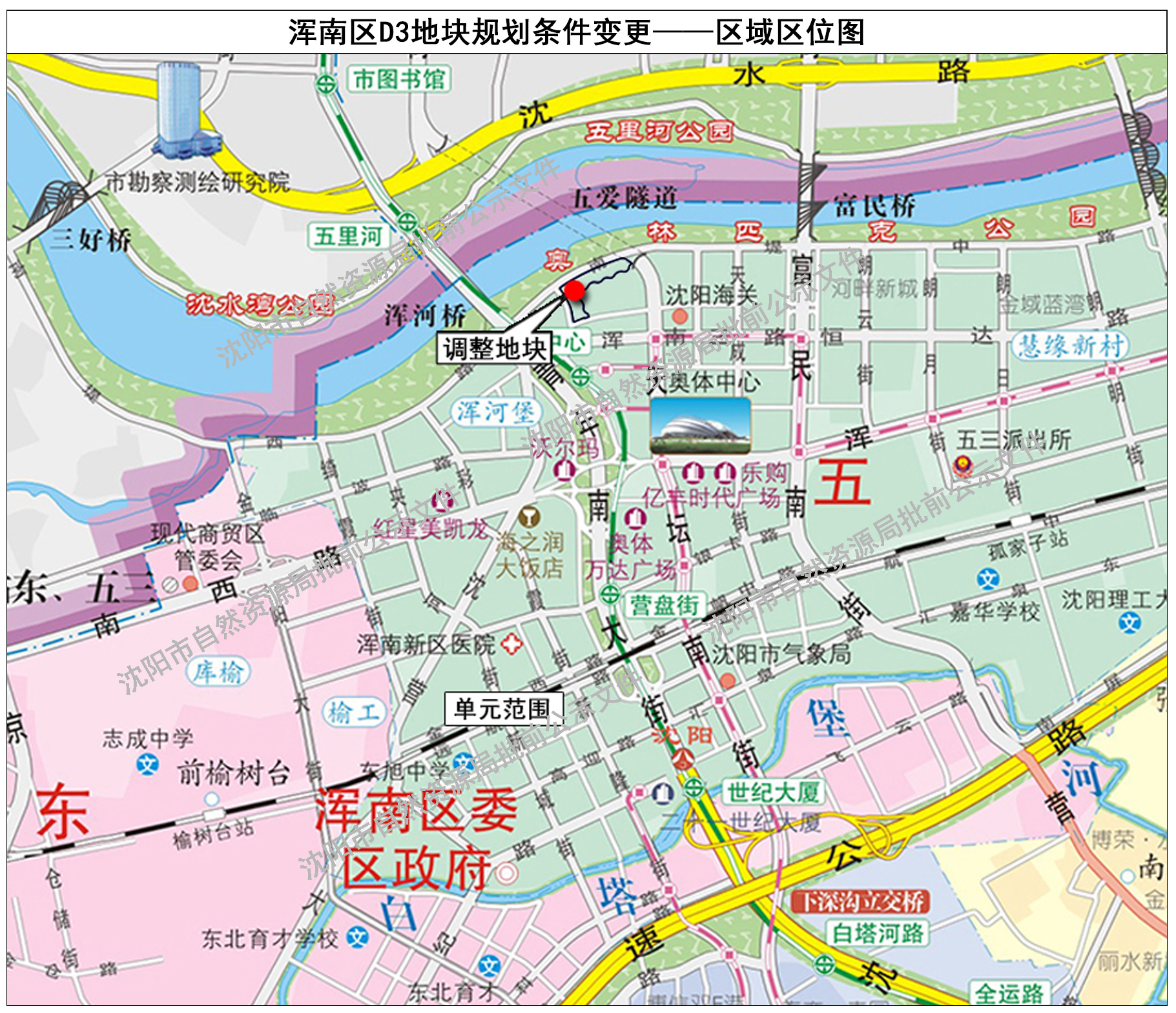 按照《中华人民共和国城乡规划法》及相关法律、法规要求,现将浑南区D3地块规划条件变更进行批前公示,征询公众意见,公示时间为7个工作日(自2026年4月7日至2026年4月15日)。在此期间,如有意见或建议可通过以下途径参与,并注明联系人及具体联系方式。利害关系人对该规划依法享有陈述、申辩以及申请听证等权利,逾期视为放弃上述权利。 1.电子邮件:hnghk-zrzyj@shenyang.gov.cn(沈阳市自然资源局浑南分局)。 2.传真:024-23786028(沈阳市自然资源局浑南分局)。 3.信函:请邮寄至沈阳市浑南区世纪路15号,沈阳市自然资源局浑南分局收,邮编:110000。 沈阳市自然资源局 2026年4月7日 规划简要内容 一、地块范围:东至天坛南街西侧道路红线及用地界线,南至浑南二路北侧道路红线及用地界线,西至天威街东侧道路红线,北至南堤中路南侧道路红线。 二、变更内容: 浑南区D3地块于2006年10月由保利达地产(沈阳)高悦有限公司竞得,规划条件为用地性质商业用地(B1),用地面积59427.62平方米,容积率不大于5.5,建筑密度不大于30%,绿地率不小于30%。为推动低效用地盘活、改善片区形象,满足该区域房地产市场的实际需求,同时也为促进奥体地区活力提升,强化用地功能混合,与周边已建项目形成联动发展,经沈阳市浑南区人民政府申请,拟将该地块用地性质由商业用地(B1)调整为商业居住混合用地(R2【B1】),容积率由不大于5.5调整为容积率不大于2.1,商业比由100%调整为商业比41%-43%,同时在地块内新增配套公共服务设施建筑面积不少于2280平方米,用地面积不少于2010平方米,详见下表。