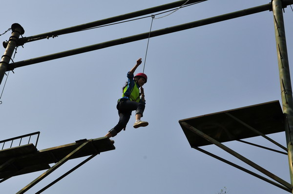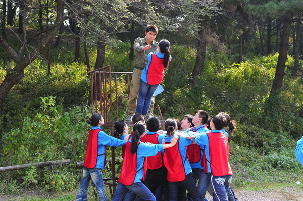 当天的拓展训练活动采取体验式培训的方式,把全体参训人员分为三组,经过团队组建,队员们通力合作,进行了“信任背摔”、“高空断桥”、“孤岛求生”“毕业墙”四个项目。在整个拓展训练过程中,队员们众志成城,以勇于挑战和富于创新的精神完成了各项拓展项目。