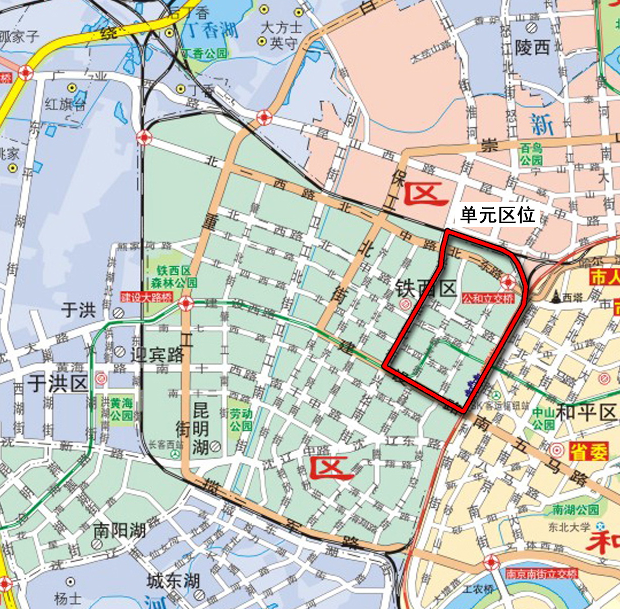 规划简要内容 一、规划范围:东至长大铁路,南至建设东路,西至兴华北街、北至沈山铁路,单元面积约4.9平方公里。 二、规划定位:该单元是集综合交通枢纽、现代商贸及居住功能为一体的高品质综合功能区。 三、用地布局:居住用地保留现状建筑质量较好的住宅建筑,同时对老旧住区进行渐进式改造,提升居住品质。公共管理与公共服务设施用地布保留现状公共服务设施。利用可改造用地增加文化、养老公益性配套设施,优化片区公共服务功能。商业服务业设施用地布保留现状商业设施,提升北二路沿线功能业态,强化高品质商贸服务。绿地与广场用地规划控制兴华北街沿线绿化带连续,同时在沈山铁路、北二东路、小北二东路、小北四东路等局部位置增加绿化带,结合沈阳站在西侧设置广场和绿地 四、五线控制 红线控制包括兴华街、兴工北街、云峰北街、北一东路、北二东路、北三东路、北四东路等道路,同时对局部地段进行支路网加密。绿线控制森林公园绿地、广场绿地以及防护绿地。黄线控制包括地铁线位、停车场、加油站、供热以及供电设施。紫线控制加强片区内1处历史建筑沈阳给水站保护。 五、本公示文件的解释权归属沈阳市自然资源局。