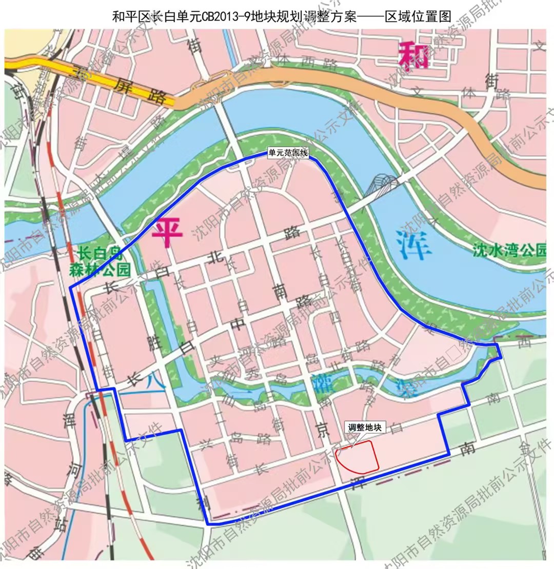 和平区长白单元CB2013-9地块位于《和平区长白单元控制性详细规划》(单元编号:ANCB),该规划于2020年4月通过2020年第一次城乡规划委员会主任会议审定。按照《中华人民共和国城乡规划法》及相关法律、法规要求,现将该单元CB2013-9地块规划调整进行批前公示,征询公众意见,公示时间为30日(自2025年12月20日至2026年1月18日)。在此期间如有意见或建议可通过以下途径参与,并注明联系人及具体联系方式。利害关系人对该规划依法享有陈述、申辩以及申请听证等权利,逾期视为放弃上述权利。 1.电子邮件:hpfjghk-zrzyj@shenyang.gov.cn(沈阳市自然资源局和平分局空间规划科)。 2.咨询电话:23861648(沈阳市自然资源局和平分局空间规划科)。 3.信函:请邮寄至沈阳市和平区嘉兴街7号。沈阳市自然资源局和平分局空间规划科收,邮编:110006。 沈阳市自然资源局 2025年12月20日 规划简要内容 一、东至和安街,南至浑南大道,西至南京南街,北至长白南路,用地面积约8.9公顷。 二、调整内容:将调整地块(8.9公顷)由二类居住用地(R2)、商业用地(B1)调整为居住商业混合用地(R2【B1】);同时将调整地块容积率由不大于4.5调整为不大于2.86,商业比由不大于60%调整为19%-21%。 三、本公示文件的解释权归属沈阳市自然资源局。