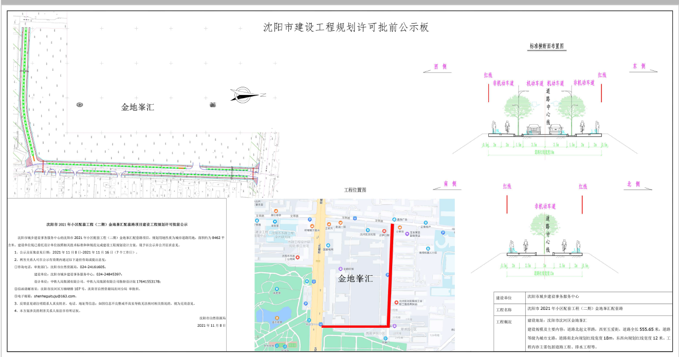 沈阳市2021年小区配套工程(二期)金地峯汇配套路项目建设工程规划许可批前公示