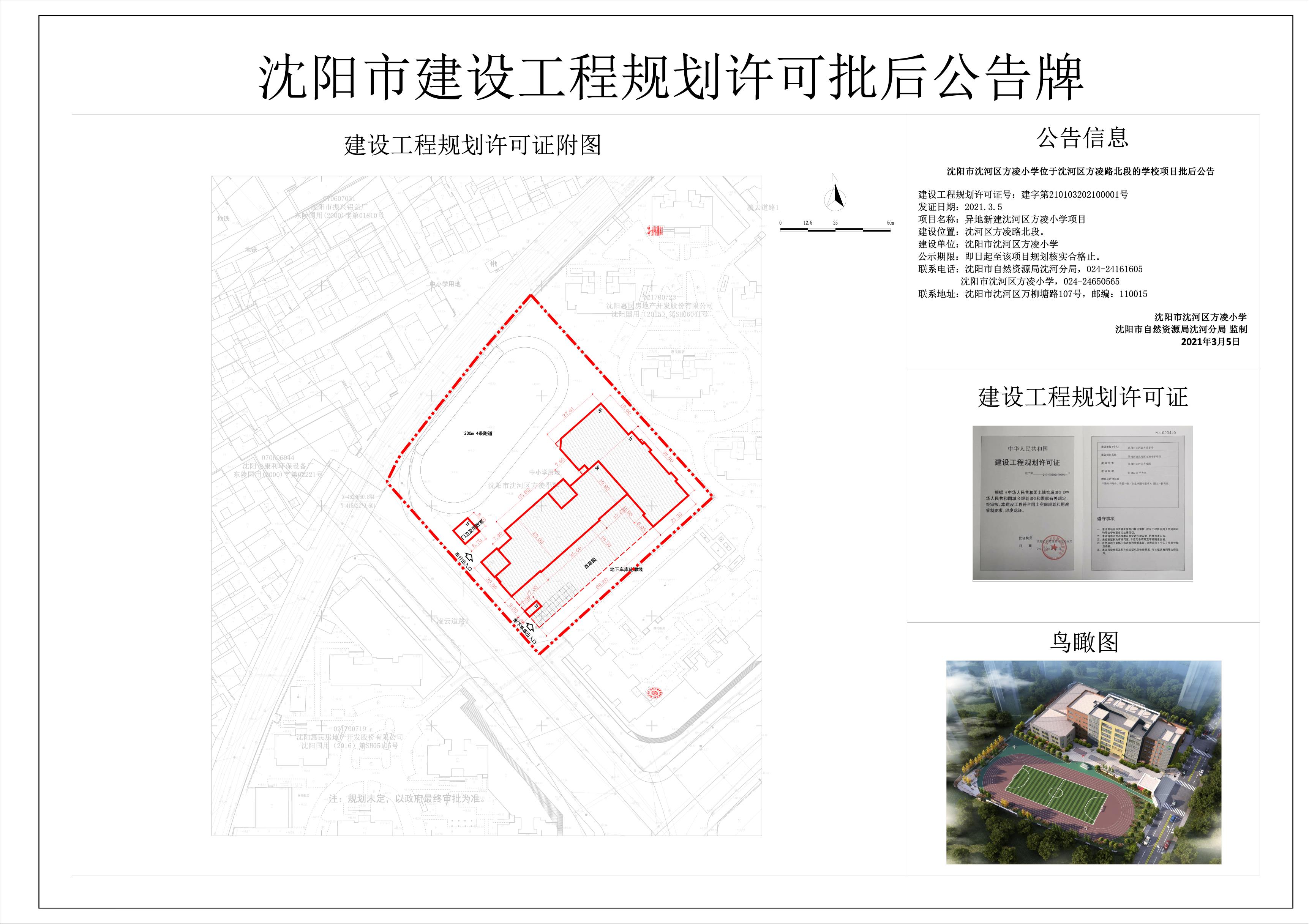 公示信息 沈阳市沈河区方凌小学位于沈河区方凌路北段的学校项目《建设工程规划许可证》批后公告