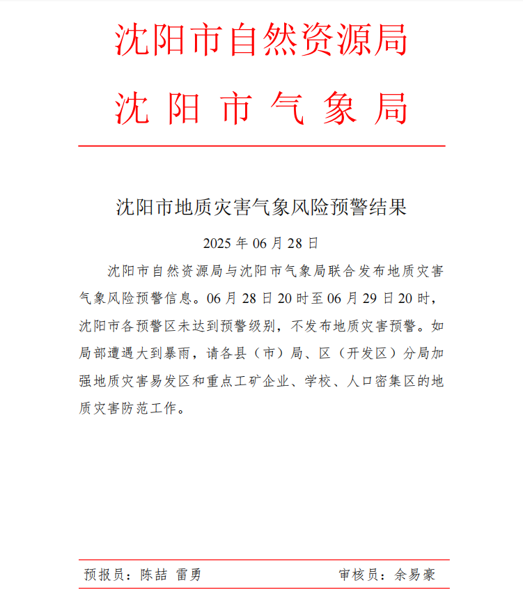 沈阳市地质灾害气象风险预警结果(6月28日).pdf