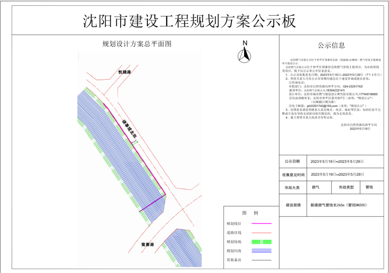 沈阳燃气有限公司位于和平区领事馆北街(悦融路-竞赛路)燃气管线工程规划许可批前公示
