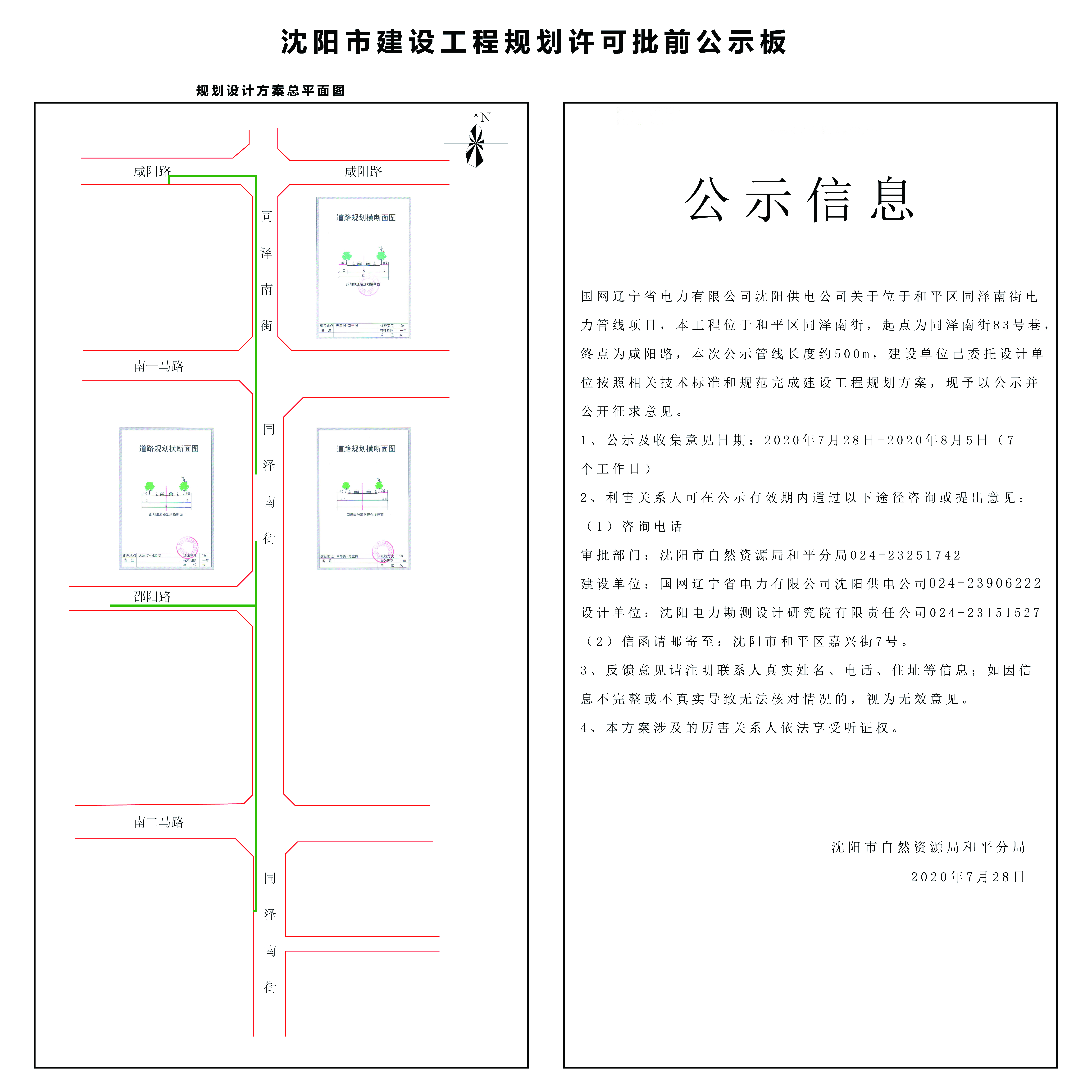 国网辽宁省电力有限公司沈阳供电公司位于和平区同泽南街项目建设工程规划许可证(市政)批前公示