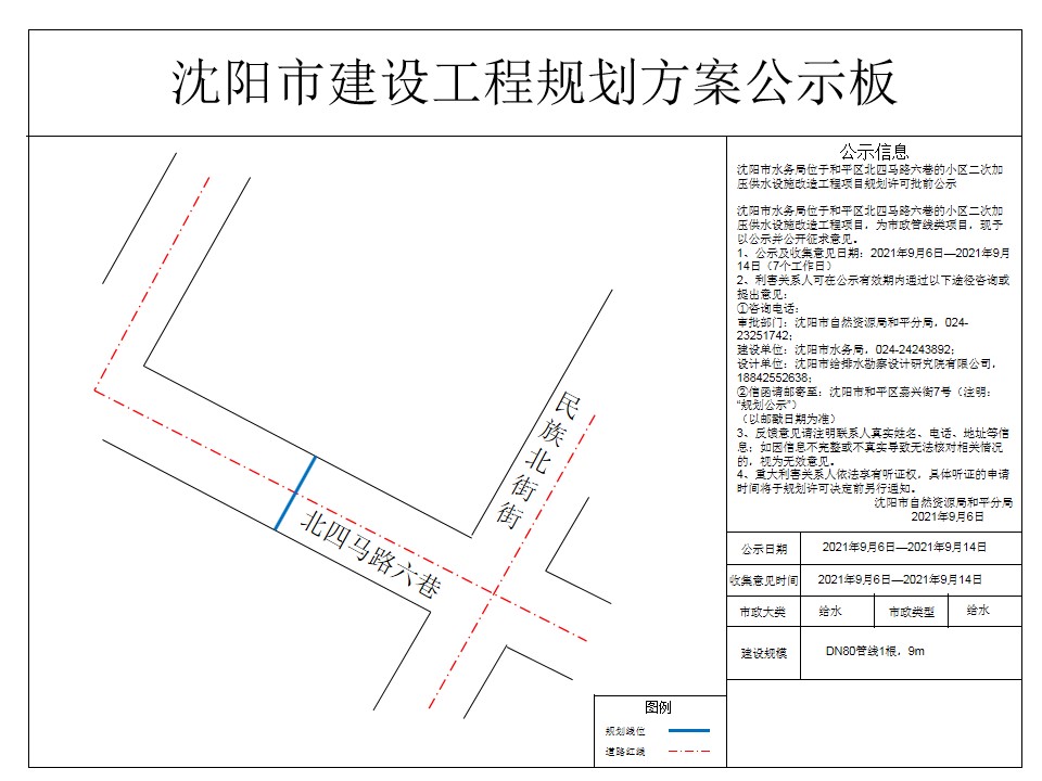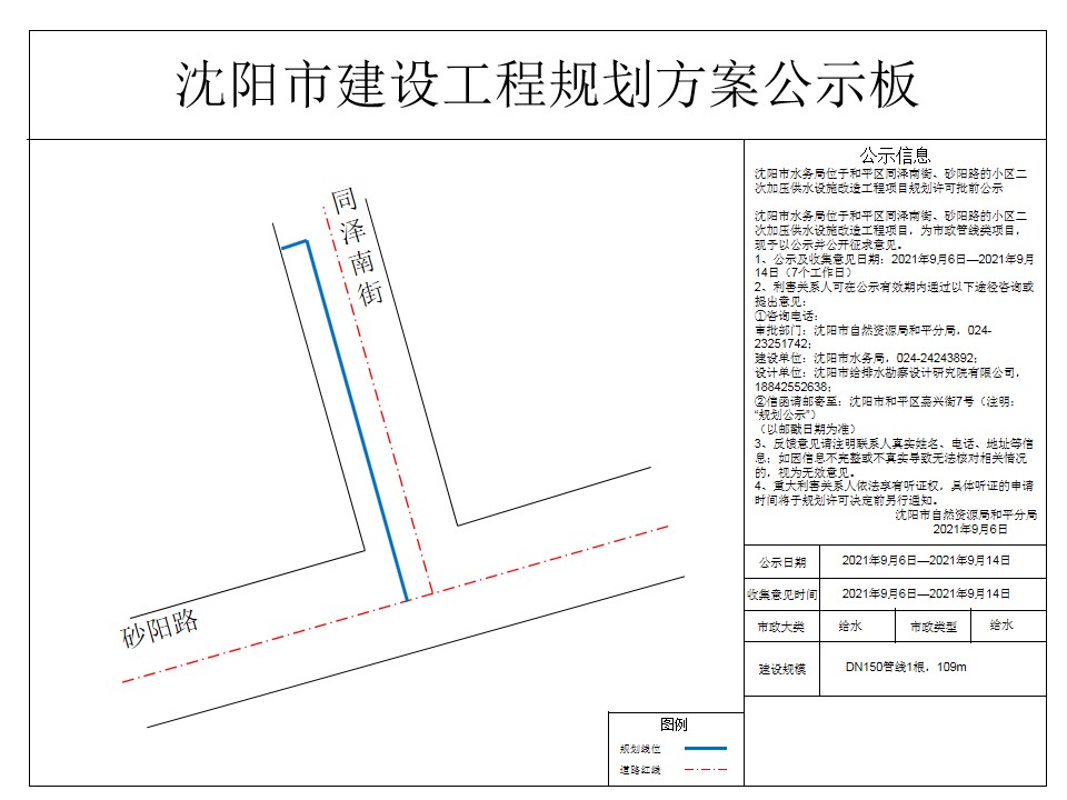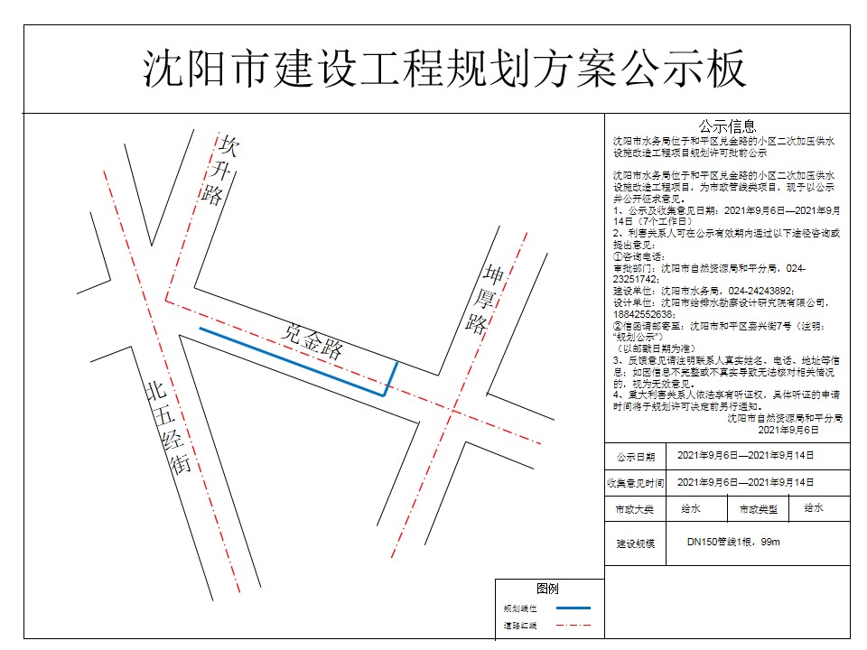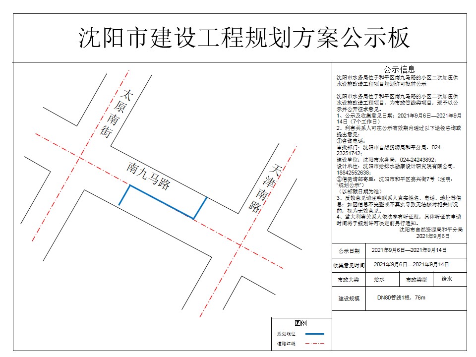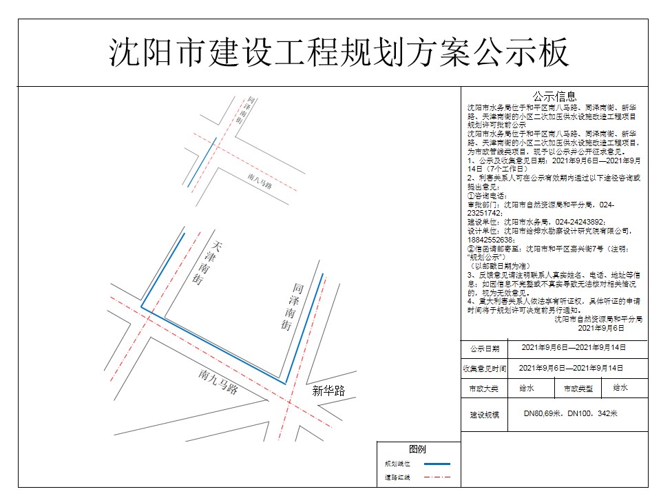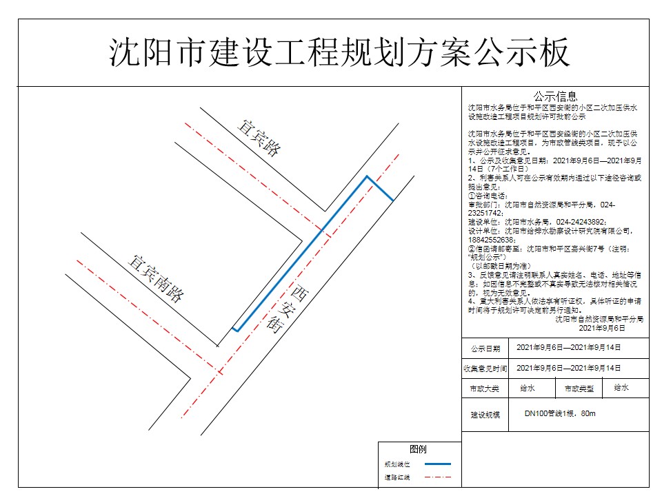 沈阳市水务局小区二次加压供水设施改造工程项目市政工程规划许可证批前公示
