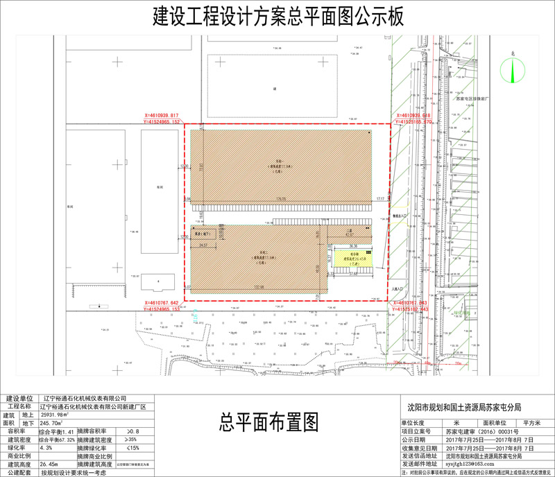 辽宁裕通石化机械仪表有限公司的工业(汽车零部件仪器仪表生产项目)建设项目总平面规划方案批前公示