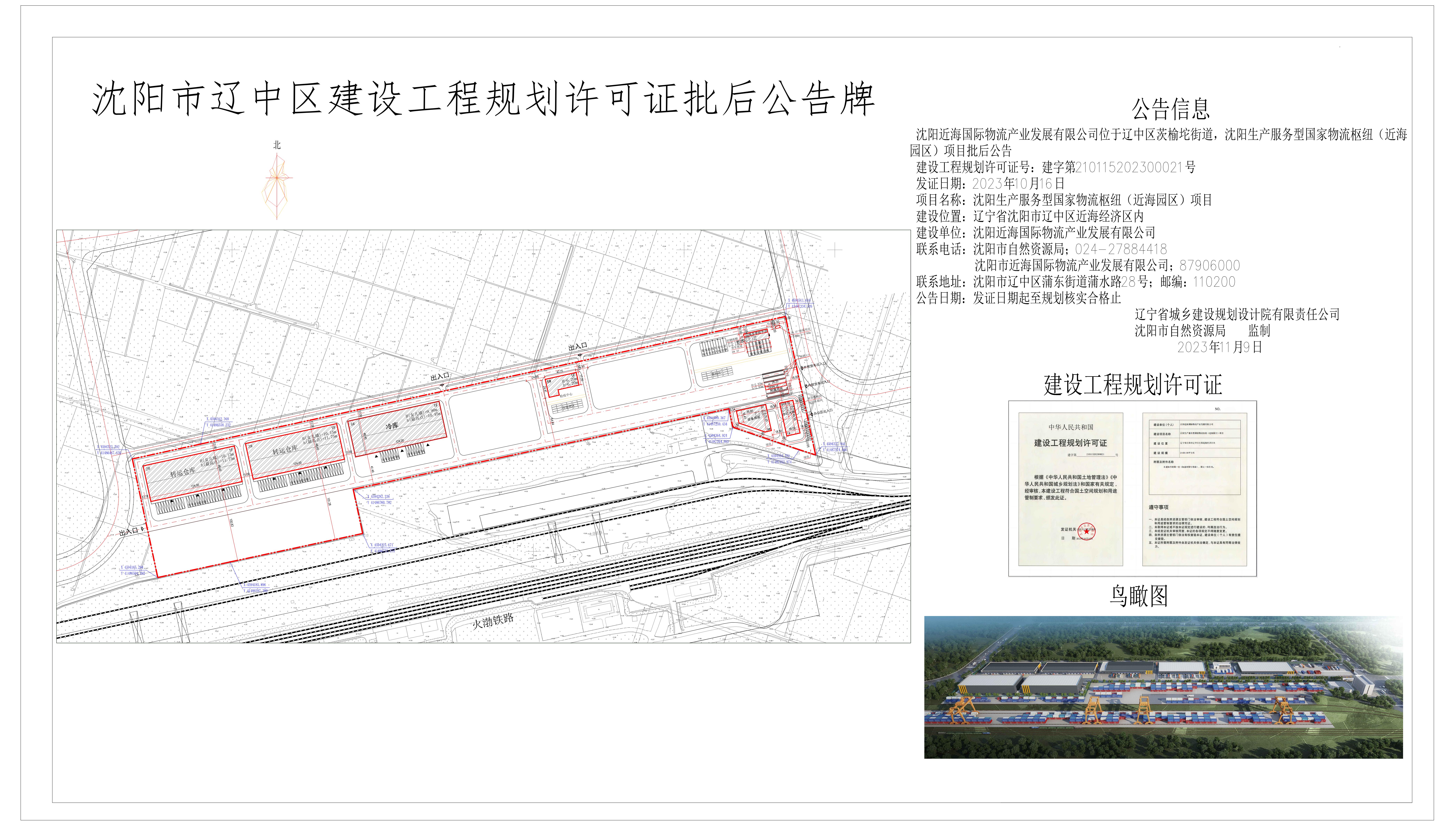 沈阳生产服务型国家物流枢纽(近海园区)项目建设工程规划许可批后公示