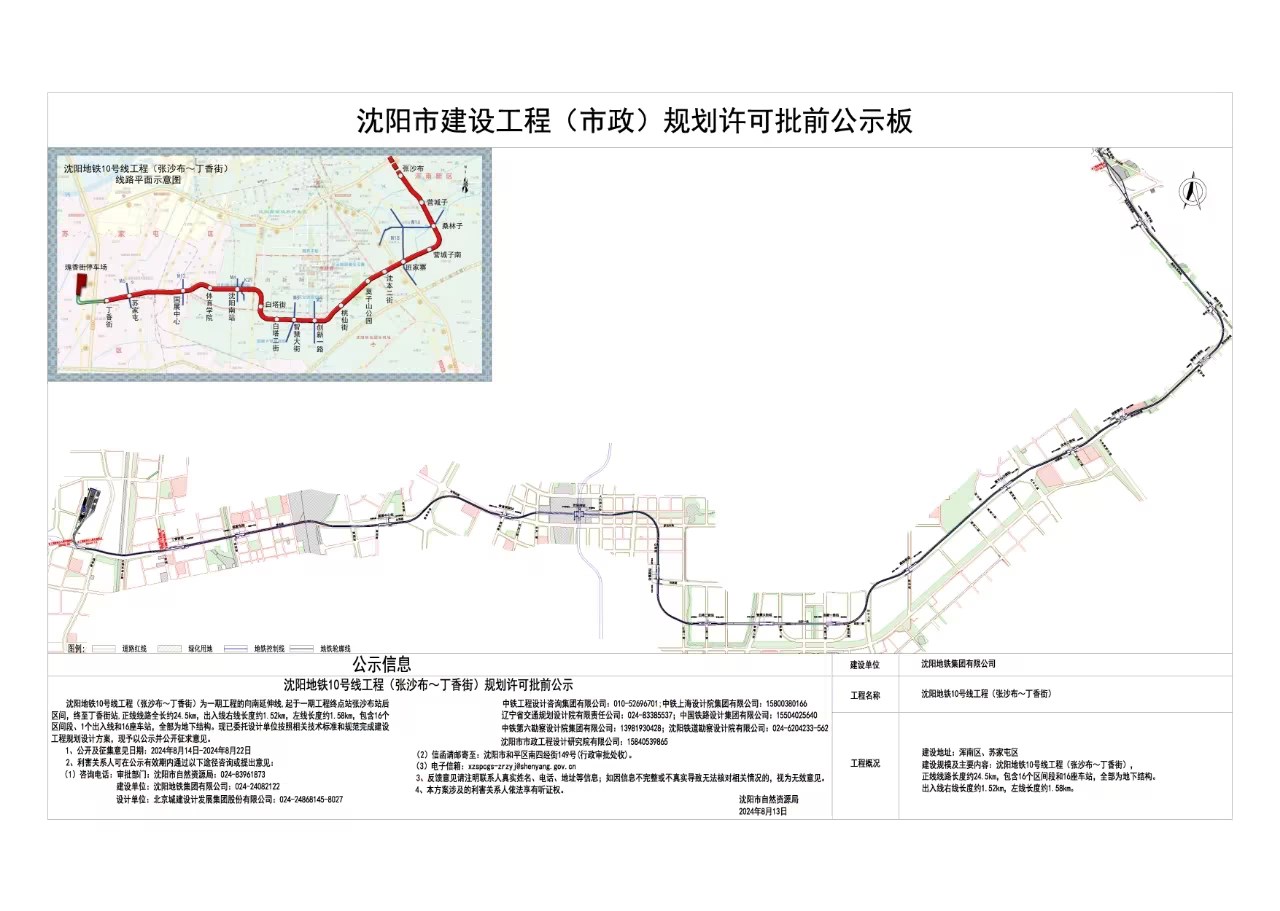 沈阳地铁10号线工程(张沙布~丁香街)规划许可批前公示