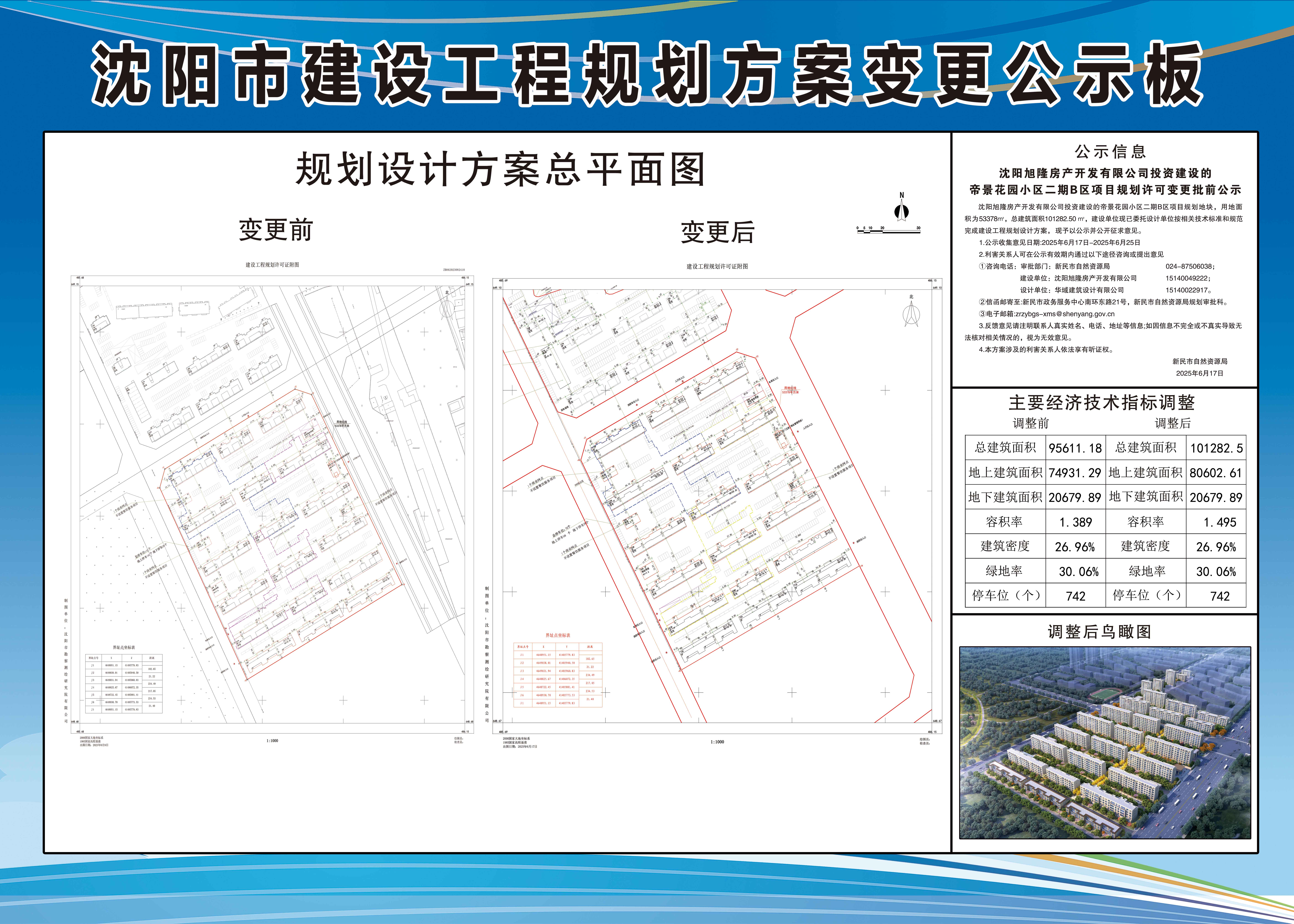 沈阳旭隆房产开发有限公司投资建设的帝景花园小区二期B区项目规划许可变更批前公示