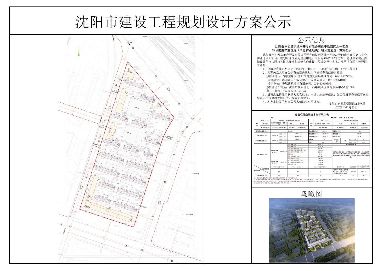 沈阳鑫丰汇源房地产开发有限公司位于铁西区北一西路32号的鑫丰鑫悦庭(华壹实业地块)项目规划设计方案公示