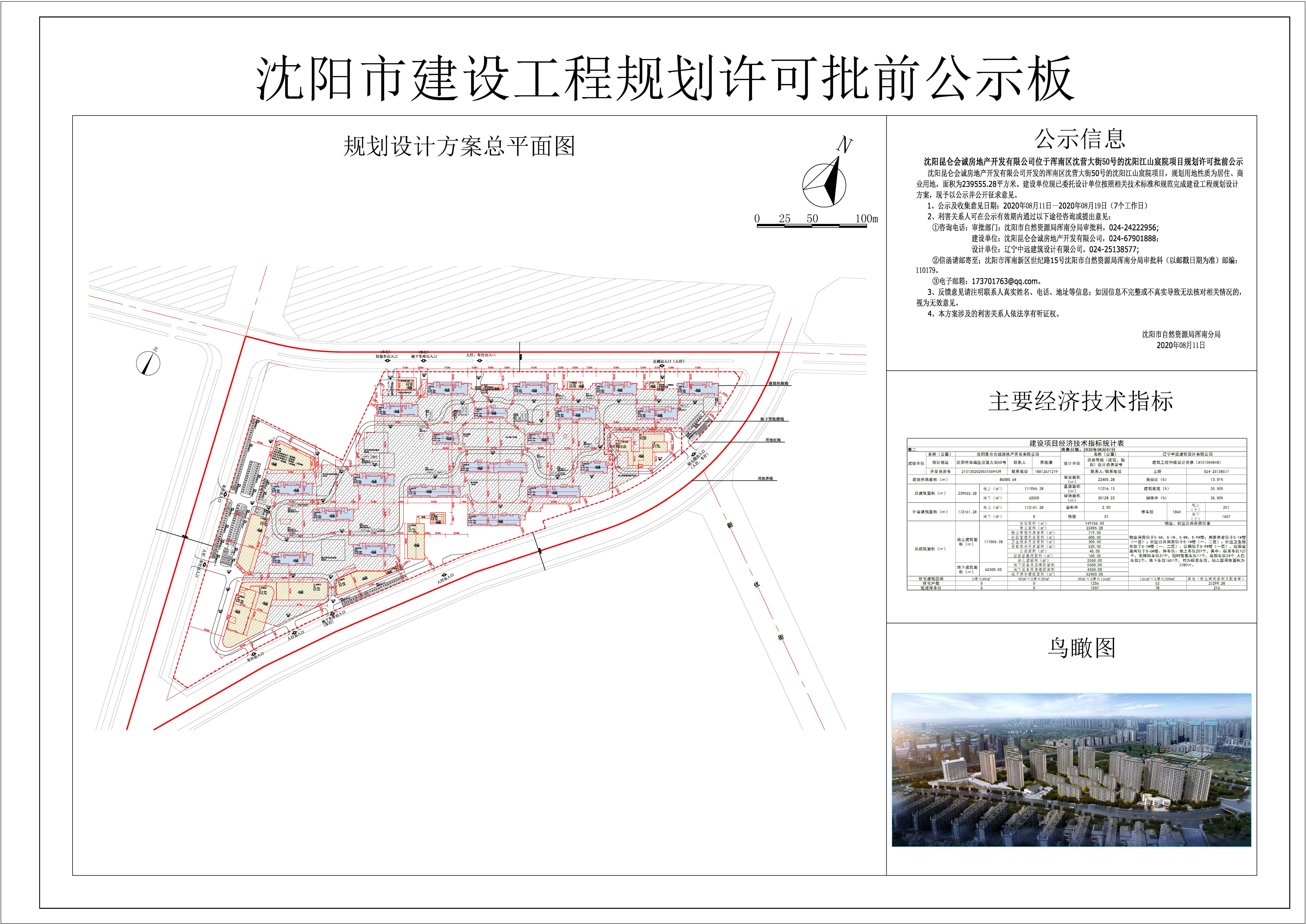 沈阳昆仑会诚房地产开发有限公司位于浑南区沈营大街50号的居住、商业(江山宸院)项目规划许可批前公示