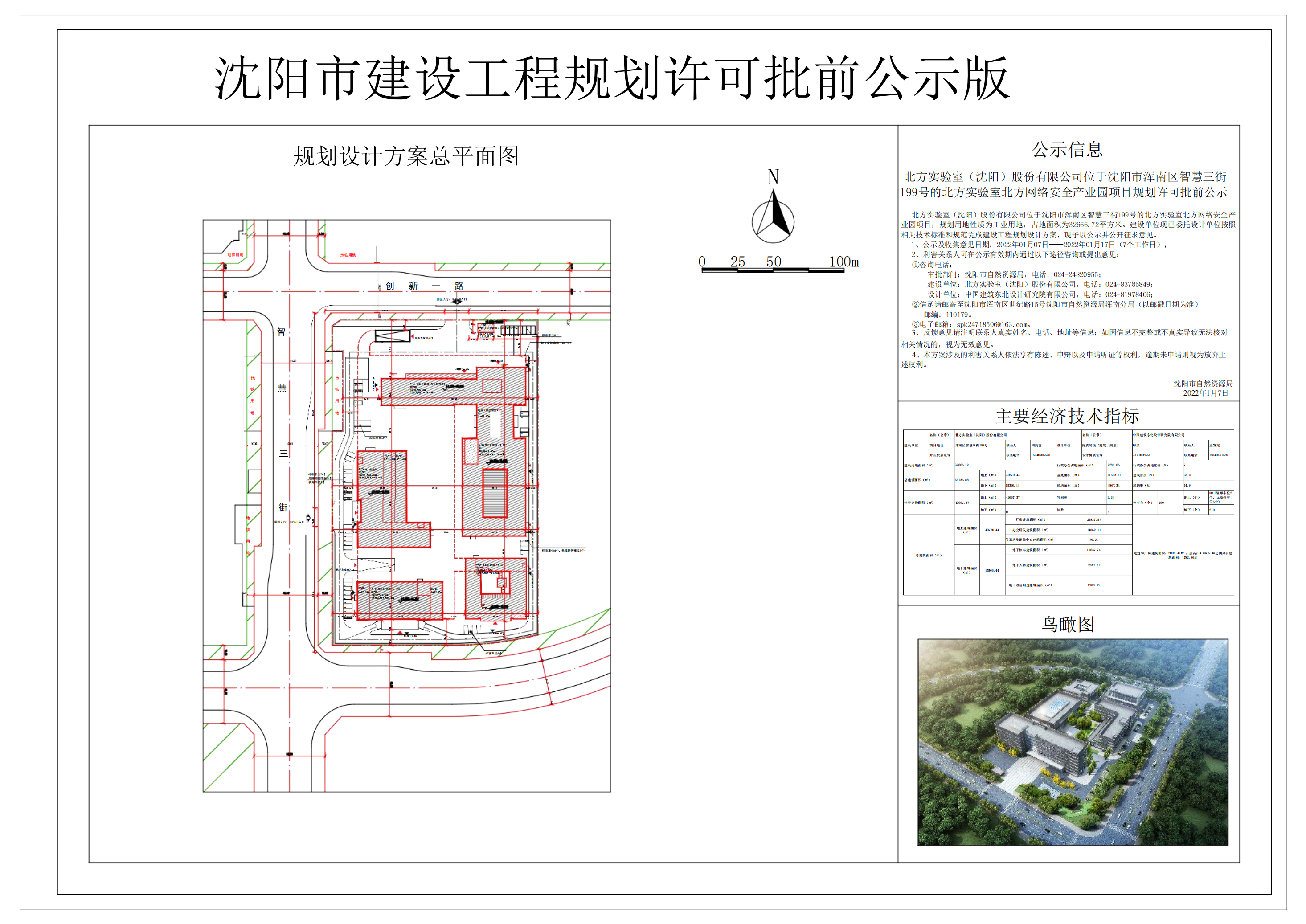 北方实验室(沈阳)股份有限公司位于沈阳市浑南区智慧三街199号的北方实验室北方网络安全产业园项目规划许可批前公示