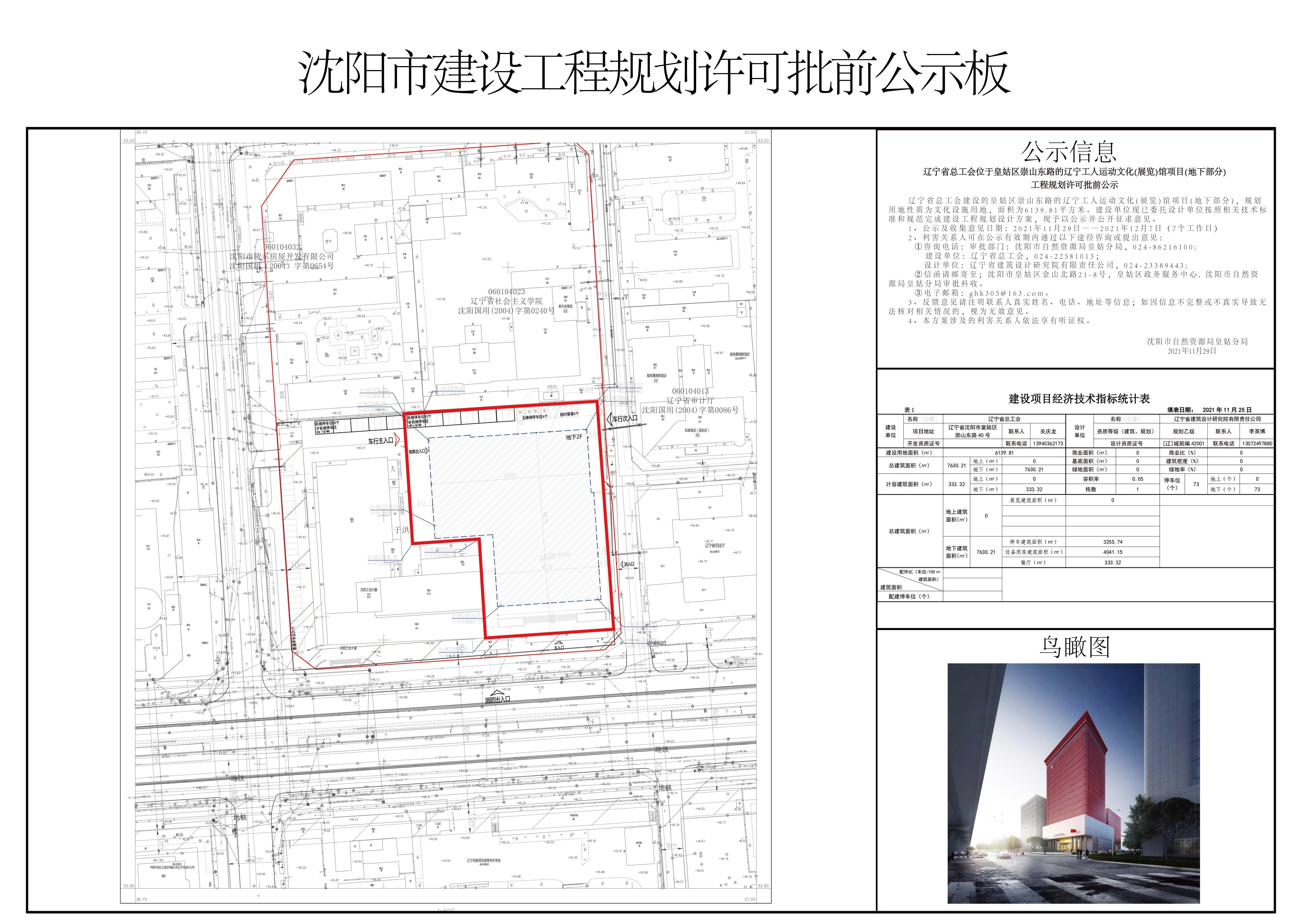 辽宁省总工会位于皇姑区崇山东路的辽宁工人运动文化(展览)馆项目(地下部分)工程规划许可批前公示