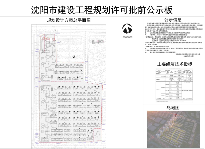 沈阳恒嘉置业有限公司沈新路居住商业项目八期(G11居住商业项目)许可批前公示。 沈阳恒嘉置业有限公司位于沈阳经济技术开发区洪湖一街1号的居住商业项目,总用地面积:148761.42平方米;本次申报内容为八期G11#建设工程规划许可证,建筑面积为11359.77平方米。建设单位现已委托设计单位按照相关技术标准和规范完成建设工程规划设计方案,现予以公示并公开征求意见。 1、公示及收集意见日期:2020年3月31日-2020年4月9日(7个工作日) 2、利害关系人可在公示有效期内通过以下途径咨询或提出意见: ①咨询电话:审批部门:沈阳市自然资源局经济技术开发区分局 规划科:024-25375039; 建设单位:沈阳恒嘉置业有限公司:024-86156200 设计单位:辽宁中远建筑设计有限公司:024-25138575 ②信函请邮寄至:沈阳市中央大街21甲5号, 沈阳市自然资源局经济技术开发区分局 规划科收,邮编:110000 ③邮箱地址:gh25375039@163.com 3、反馈意见请注明联系人真实姓名、电话、地址等信息;如因信息不完整或不真实导致无法核对相关情况的,视为无效意见。 4、本方案涉及的利益相关人依法享有听证权。 沈阳市自然资源局经济技术开发区分局 2020年3月31日
