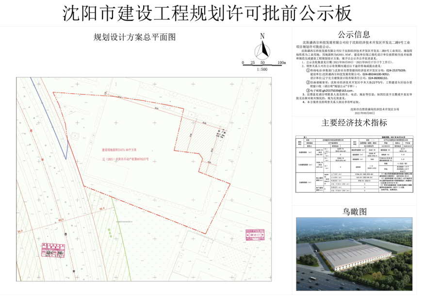 公示信息 沈阳盛西尔科技发展有限公司位于沈阳经济技术开发区开发北二路9号工业项目规划许可批前公示。 沈阳盛西尔科技发展有限公司位于沈阳经济技术开发区开发北二路9号工业项目,规划用地性质为工业用地,用地面积为82601.95㎡。建设单位现已委托设计单位按照相关技术标准和规范完成建设工程规划设计方案,现予以公示并公开征求意见。 1、公示及收集意见日期:2021年09月09日一2021年09月17日(7个工作日)。 2、利害关系人可在公示有效期内通过以下途径咨询或提出意见: ①咨询电话:审批部门:沈阳市自然资源局经济技术开发区分局:024-25375039; 建设单位:沈阳盛西尔科技发展有限公司:024-89244100-9052; 设计单位:辽宁北方建筑设计院有限责任公司:024-86906132; ②信函请邮寄至:沈阳市经济技术开发区中央大街21甲5号,工程建设专区综合受理窗口收(请注明“规划公示”字样); ③电子邮箱:gh25375039@163.com。 3、反馈意见请注明联系人真实姓名、电话、地址等信息;如因信息不完整或不真实导致无法核对相关情况的,视为无效意见。 4、本方案涉及的利害关系人依法享有听证权。