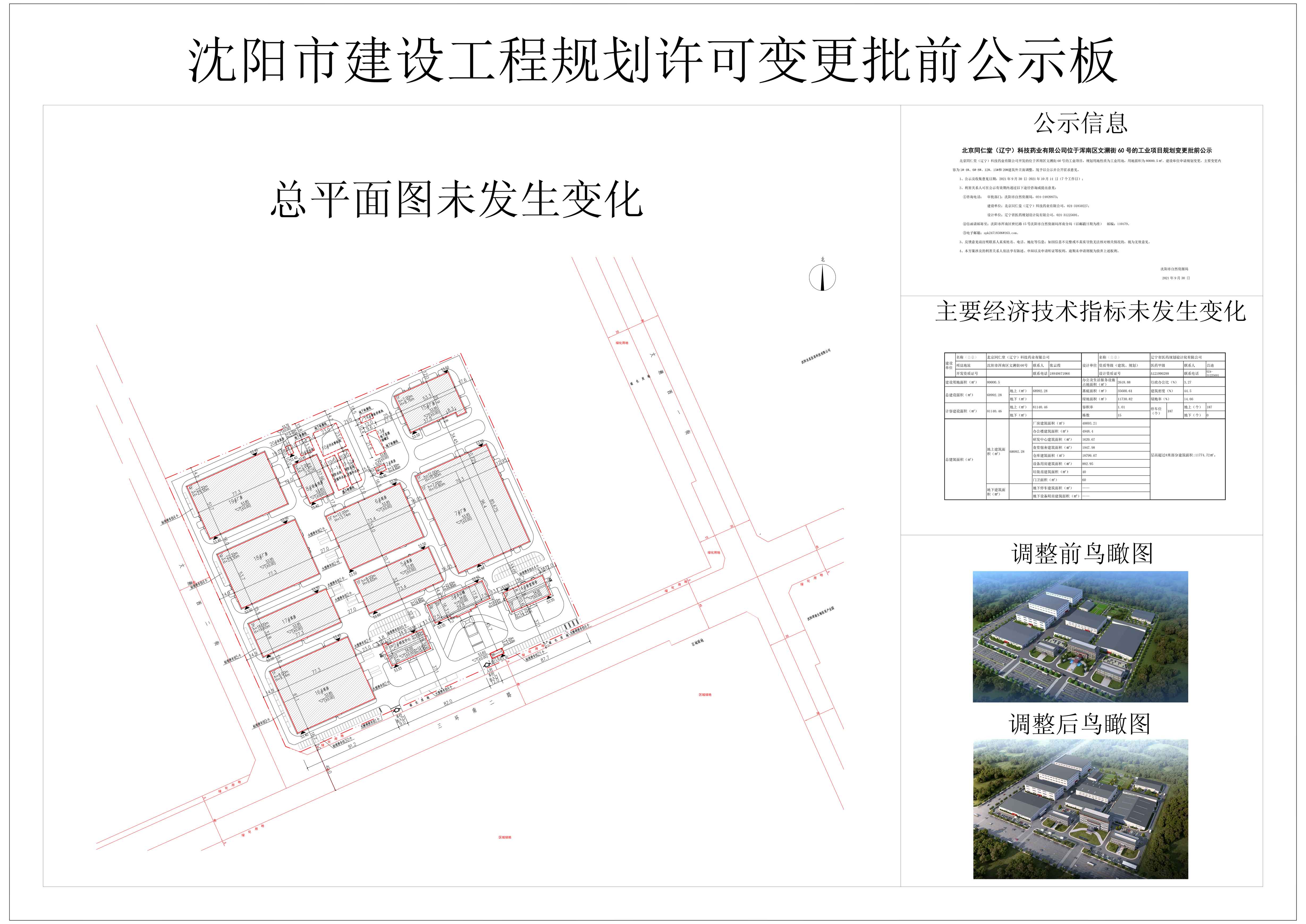 北京同仁堂(辽宁)科技药业有限公司位于浑南区文溯街60号的工业项目规划变更批前公示