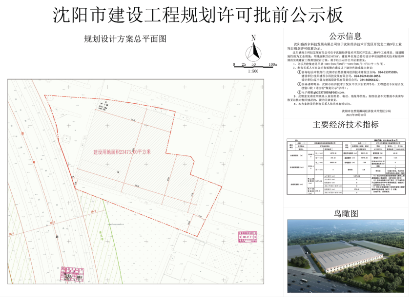 公示信息 沈阳盛西尔科技发展有限公司位于沈阳经济技术开发区开发北二路9号工业项目规划许可批前公示。 沈阳盛西尔科技发展有限公司位于沈阳经济技术开发区开发北二路9号工业项目,规划用地性质为工业用地,用地面积为23473㎡。建设单位现已委托设计单位按照相关技术标准和规范完成建设工程规划设计方案,现予以公示并公开征求意见。 1、公示及收集意见日期:2021年09月09日一2021年09月17日(7个工作日)。 2、利害关系人可在公示有效期内通过以下途径咨询或提出意见: ①咨询电话:审批部门:沈阳市自然资源局经济技术开发区分局:024-25375039; 建设单位:沈阳盛西尔科技发展有限公司:024-89244100-9052; 设计单位:辽宁北方建筑设计院有限责任公司:024-86906132; ②信函请邮寄至:沈阳市经济技术开发区中央大街21甲5号,工程建设专区综合受理窗口收(请注明“规划公示”字样); ③电子邮箱:gh25375039@163.com。 3、反馈意见请注明联系人真实姓名、电话、地址等信息;如因信息不完整或不真实导致无法核对相关情况的,视为无效意见。 4、本方案涉及的利害关系人依法享有听证权。