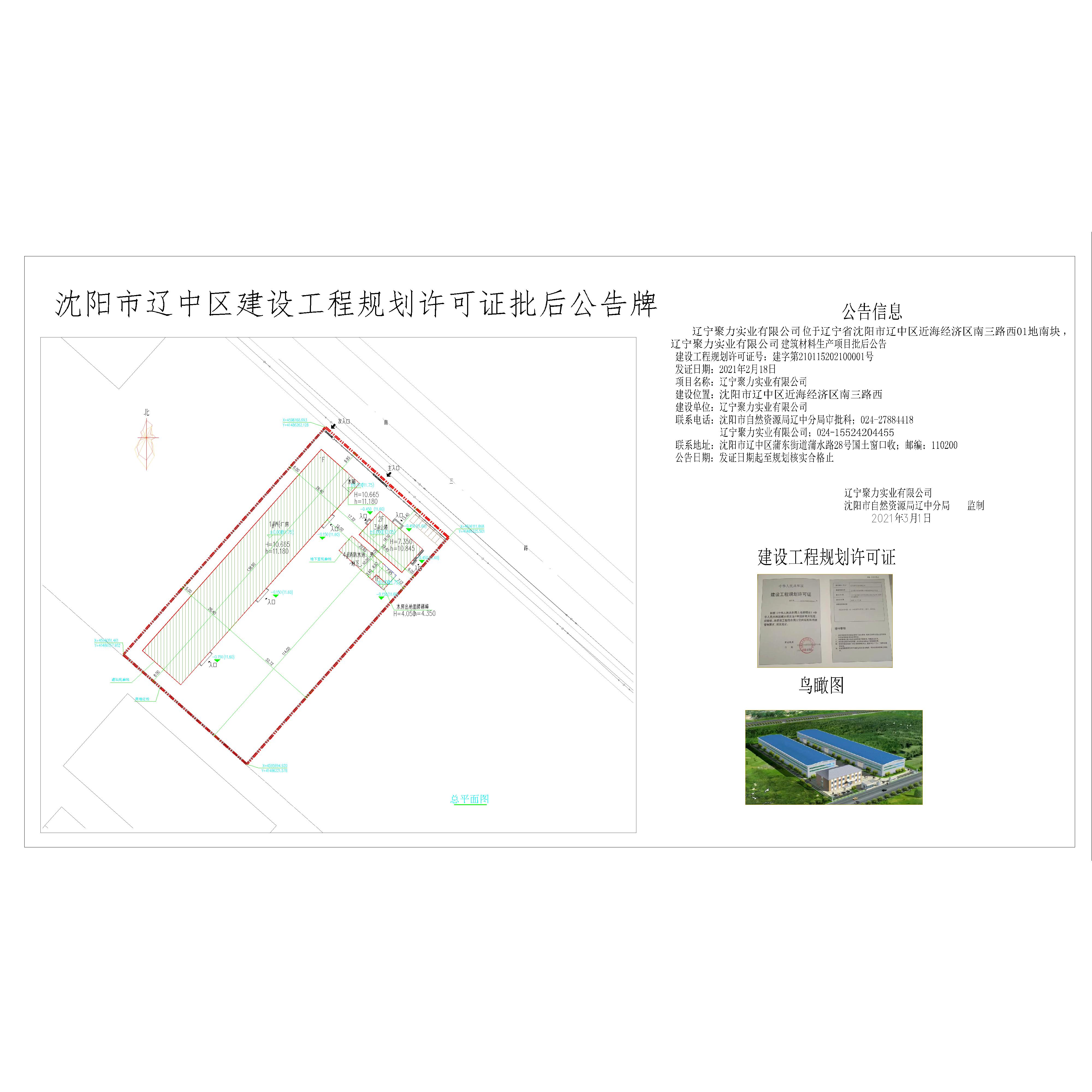 辽宁聚力实业有限公司位于辽宁省沈阳市辽中区近海经济区南三路西01地南块,辽宁聚力实业有限公司建筑材料生产项目批后公告