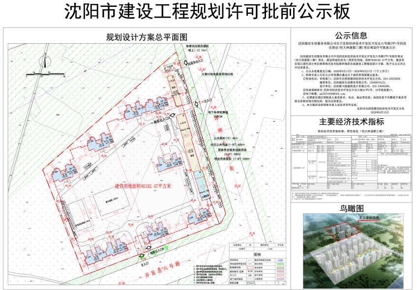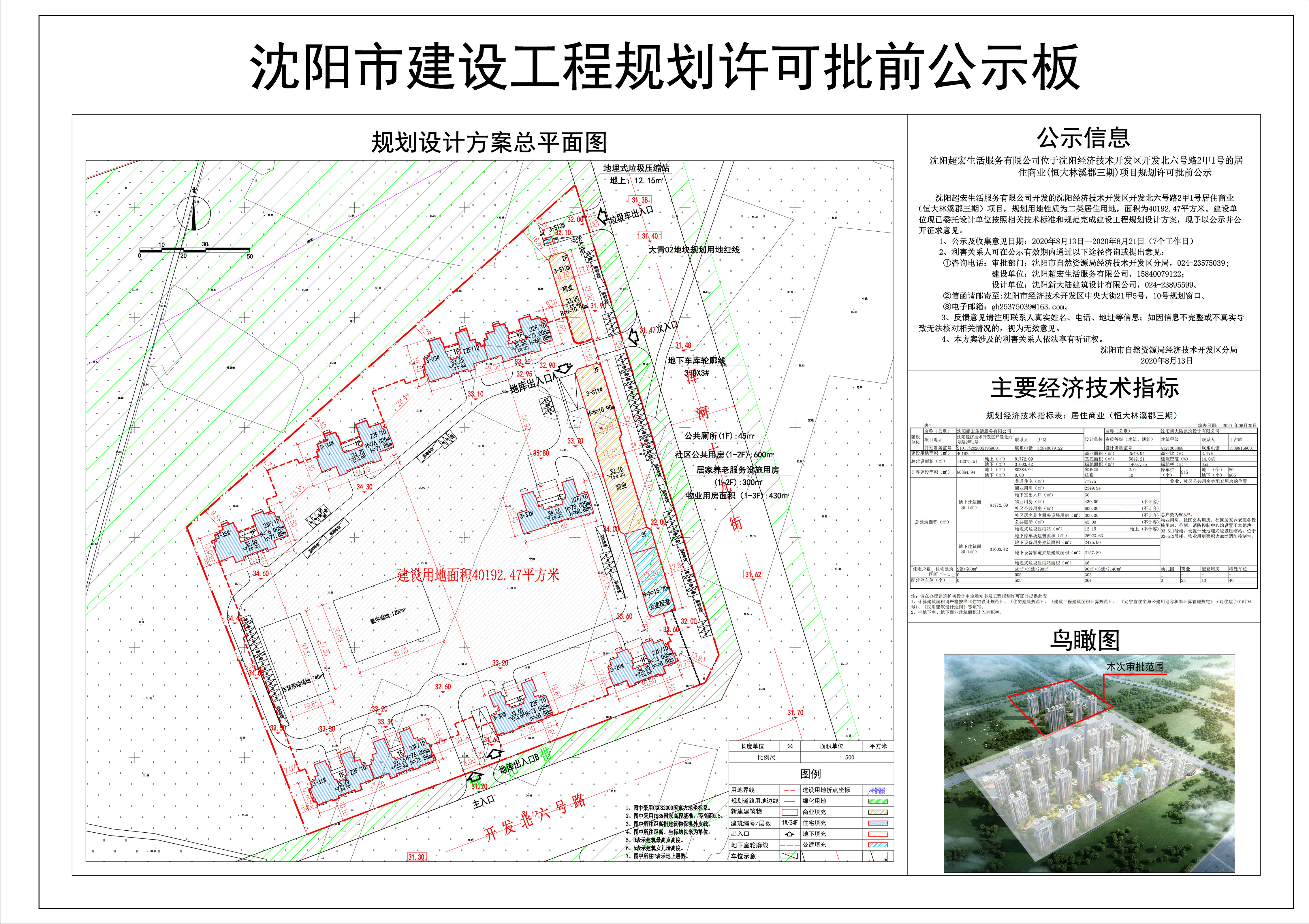 沈阳超宏生活服务有限公司位于沈阳市经济技术开发区开发北六号路2甲1号的居住商业(恒大林溪郡三期)项目规划许可批前公示