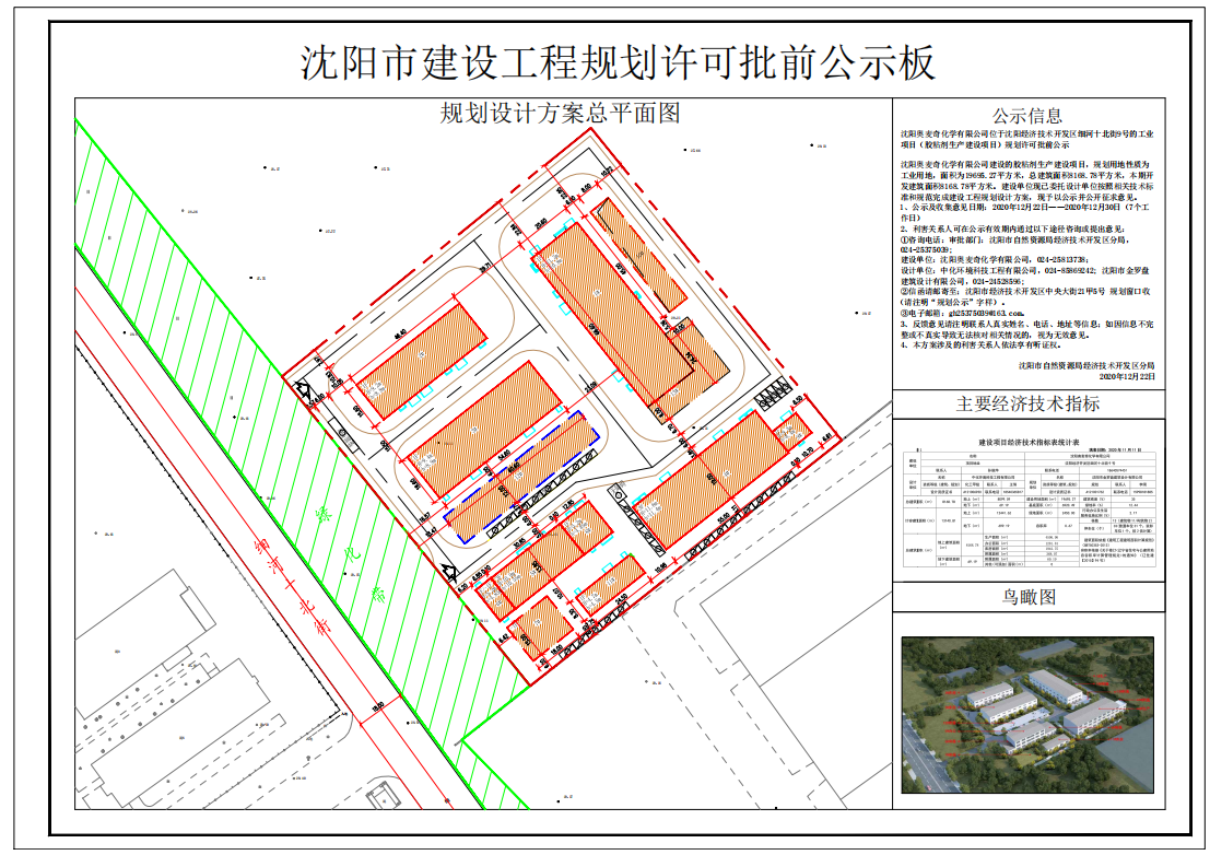 沈阳奥麦奇化学有限公司位于沈阳经济技术开发区细河十北街9号的工业项目(胶粘剂生产建设项目)规划许可批前公示