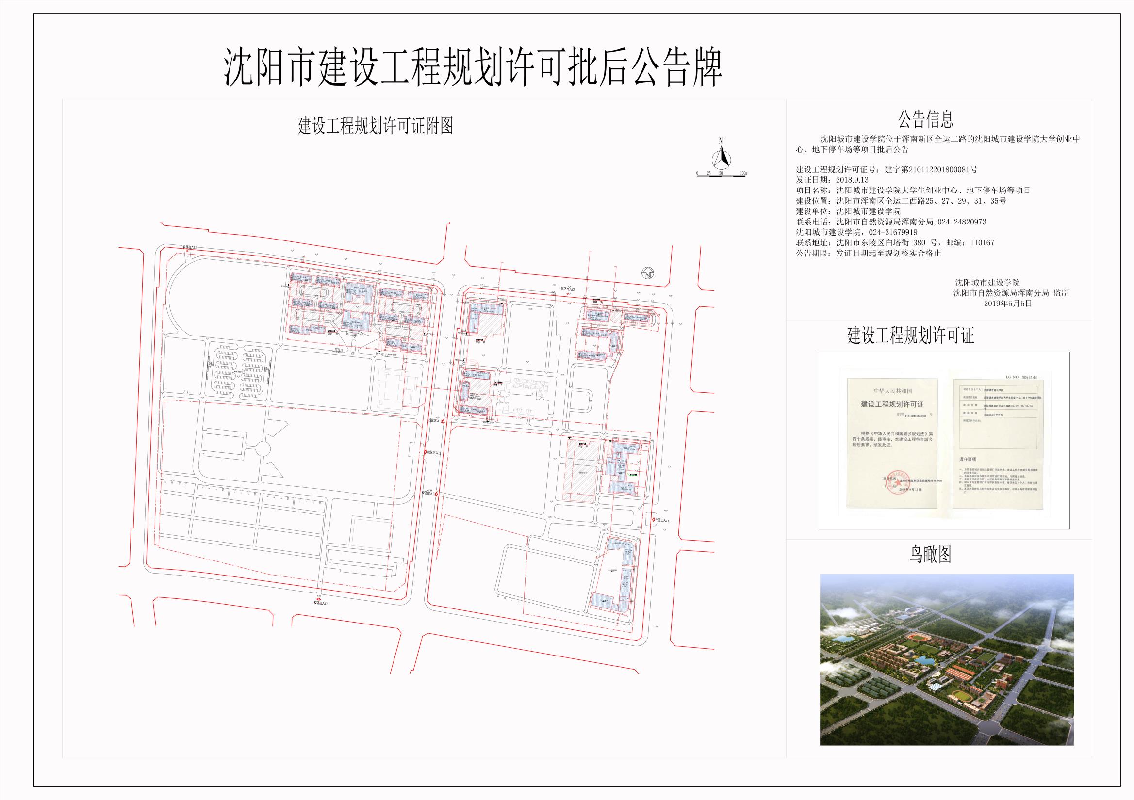 沈阳城市建设学院位于浑南区全运二西路的大学生创业中心、地下停车场等项目《建设工程规划许可证内容变更》批后公告