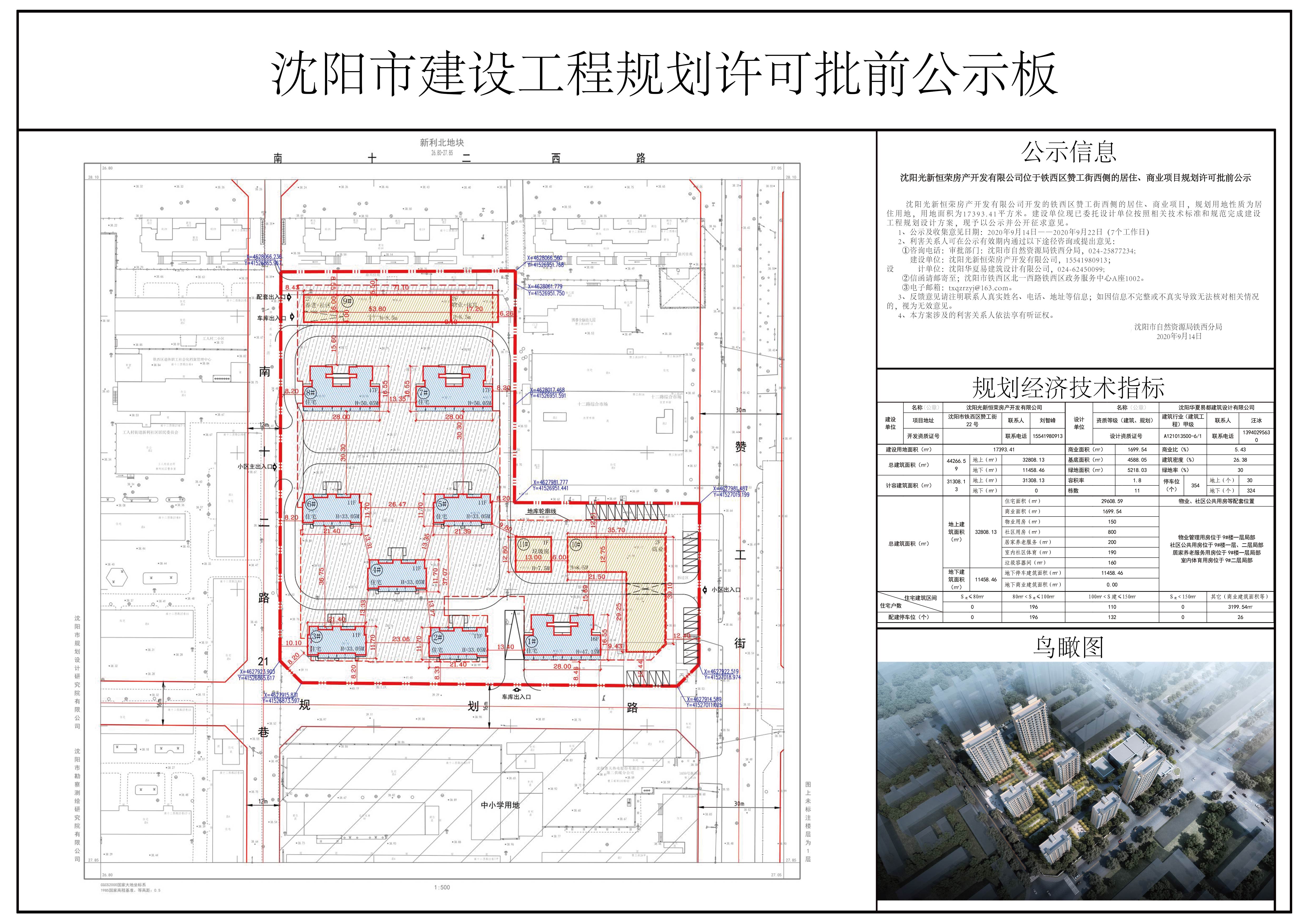 沈阳光新恒荣房产开发有限公司位于铁西区赞工街西侧的居住、商业项目规划许可批前公示