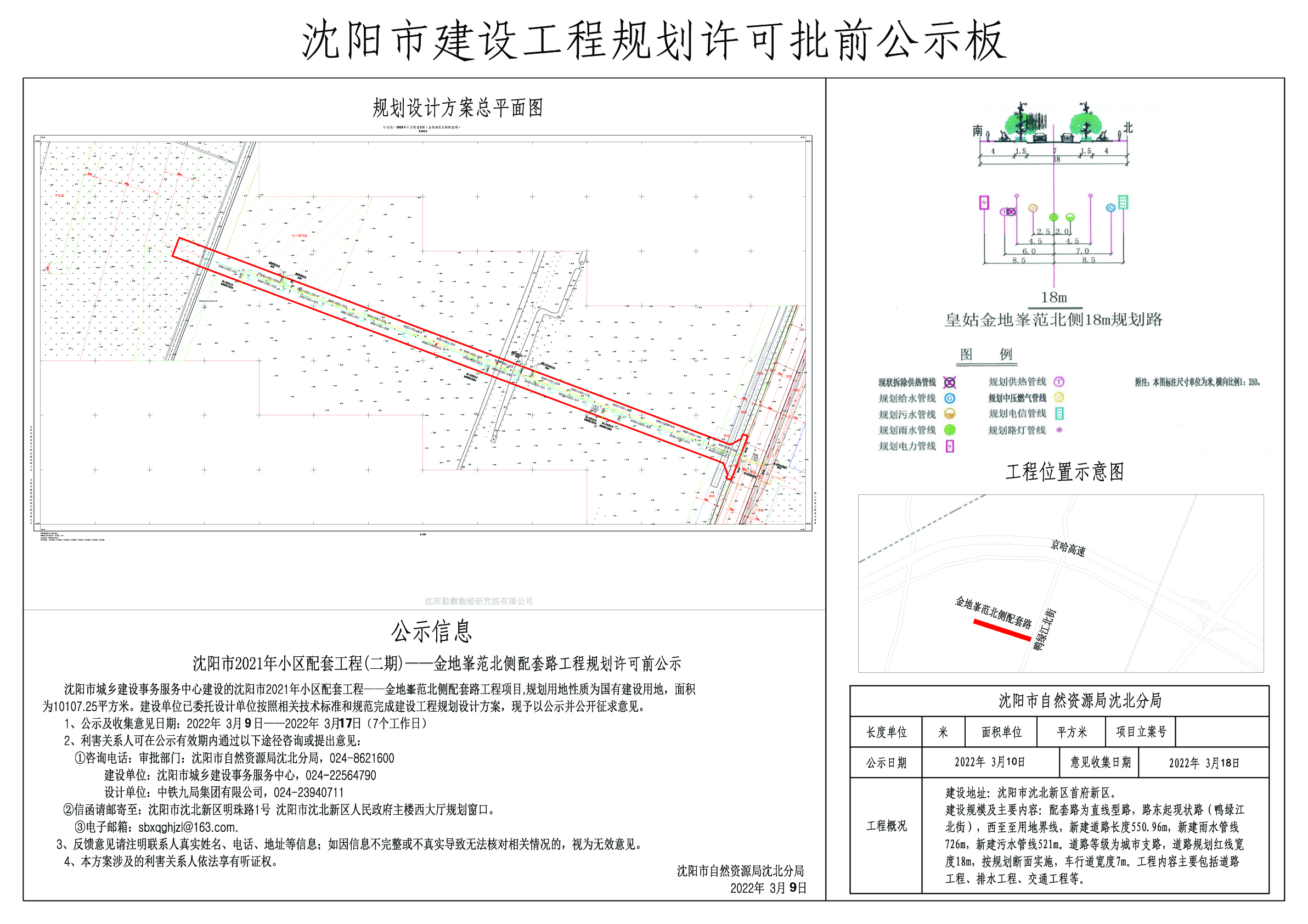 沈阳市2021年小区配套工程(二期)金地峯范北侧配套路施工项目规划许可批前公示
