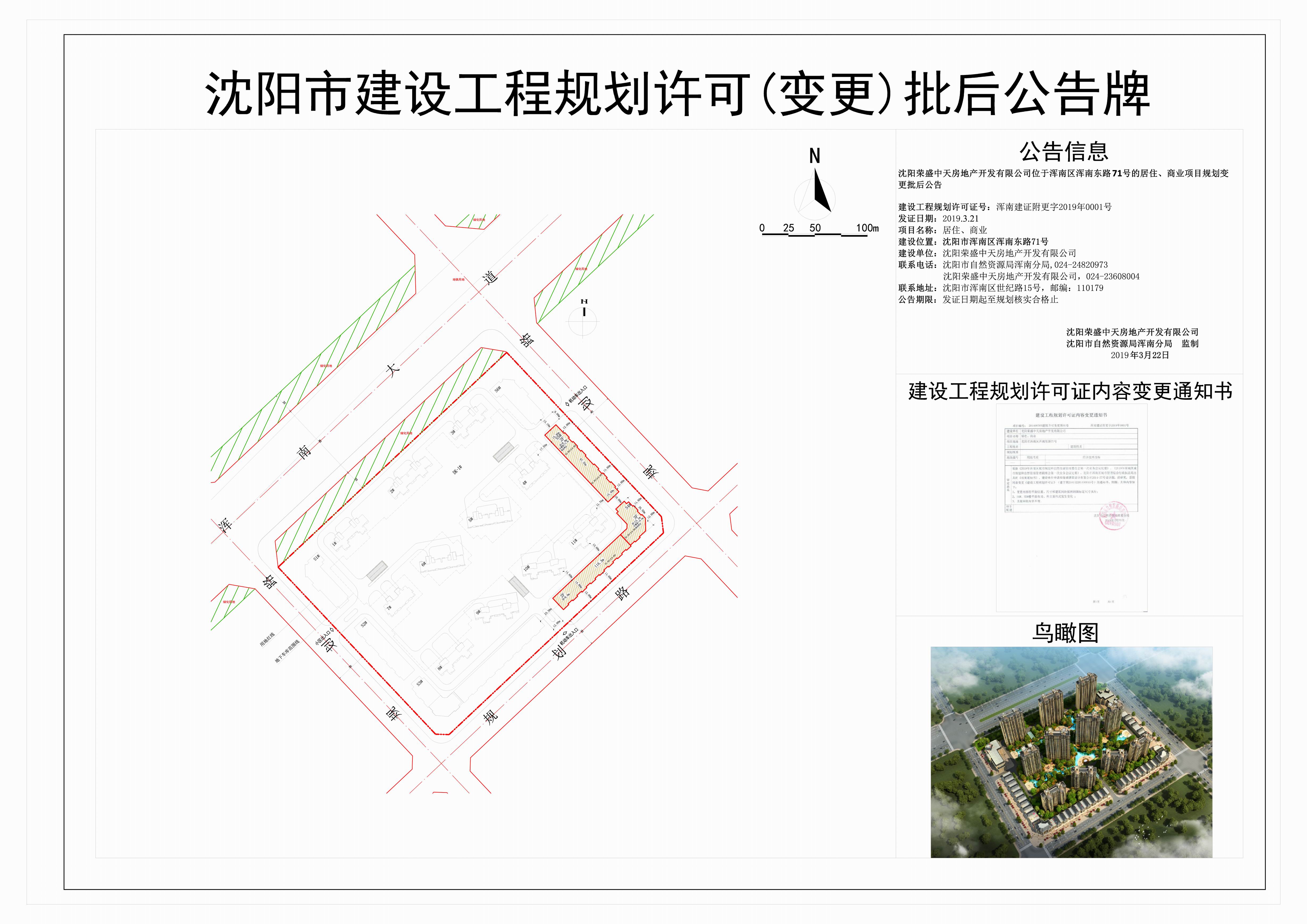 沈阳荣盛中天房地产开发有限公司位于浑南区浑南东路71号的居住、商业项目规划变更批后公告