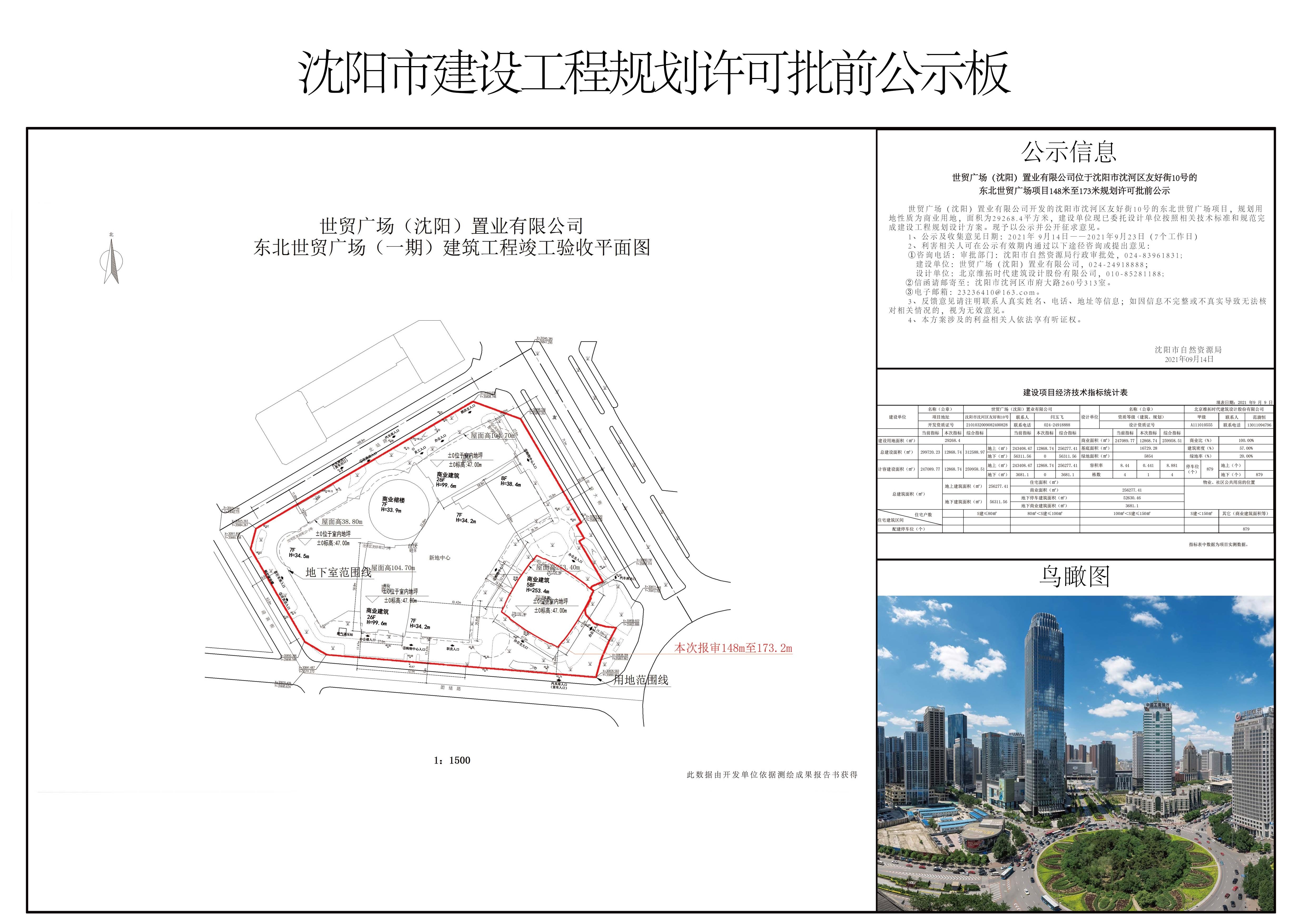 世贸广场(沈阳)置业有限公司位于沈阳市沈河区友好街10号的东北世贸广场项目148米至173米规划许可批前公示