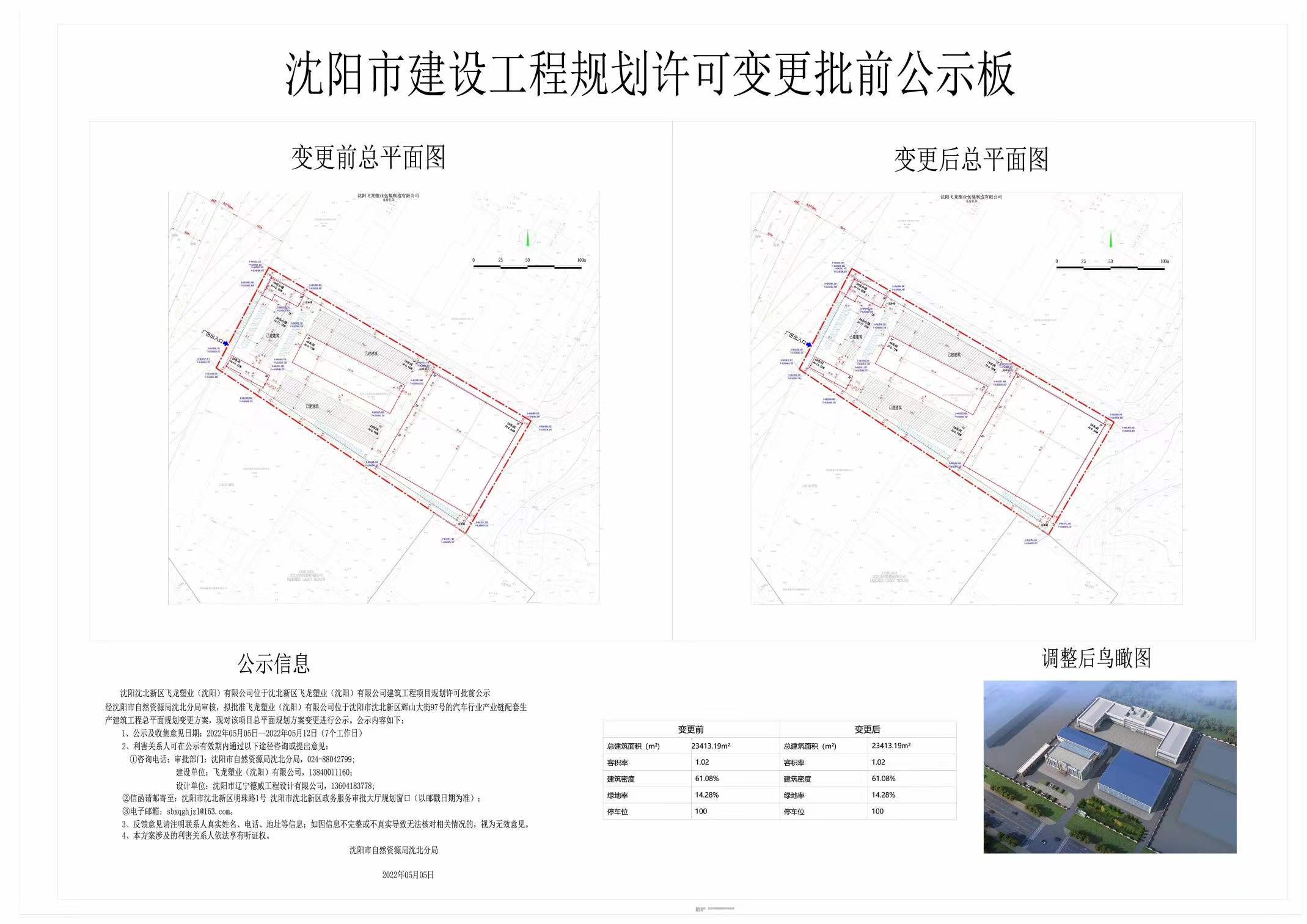 飞龙塑业(沈阳)有限公司汽车行业产业链配套生产建筑工程总平面方案变更批前公示