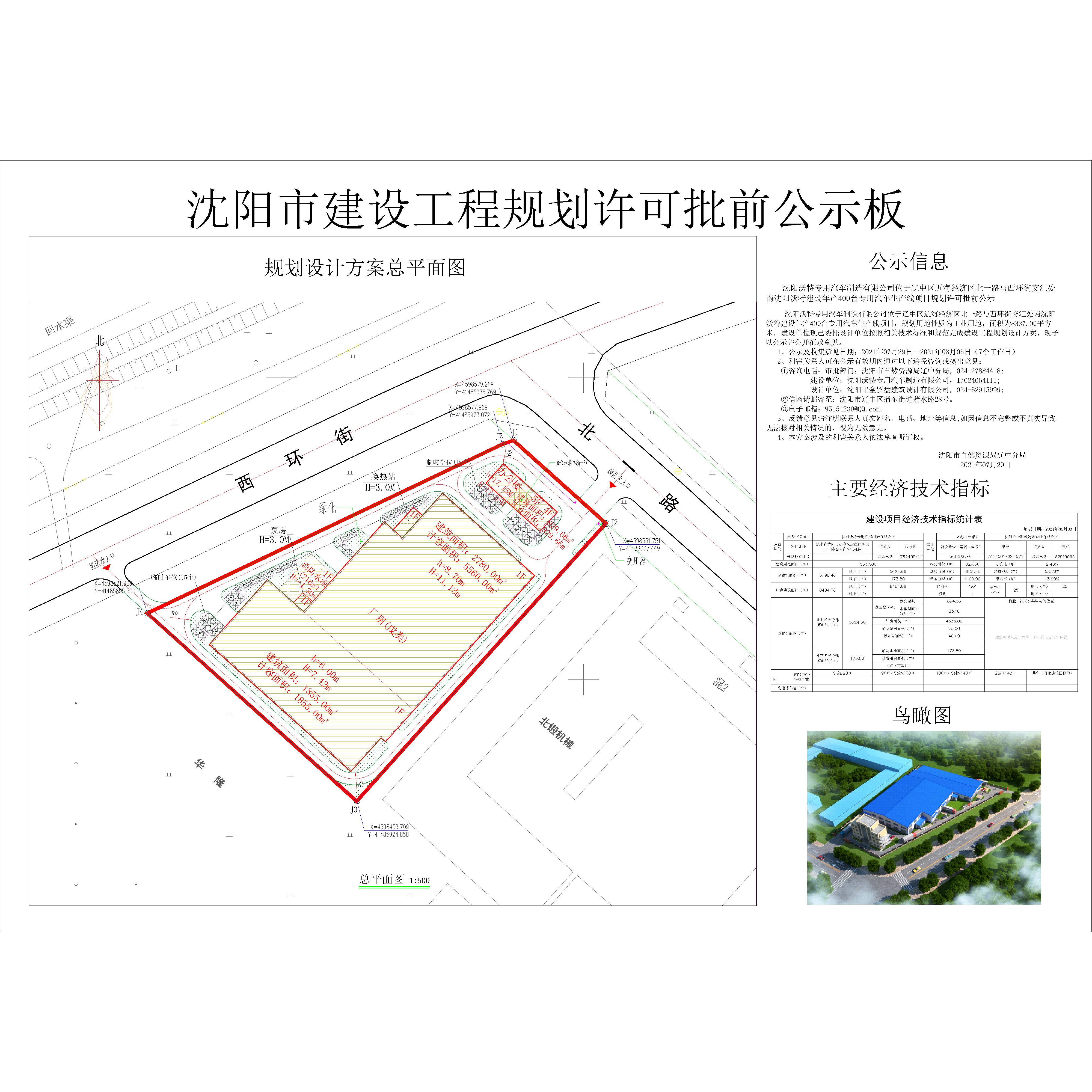 沈阳沃特专用汽车制造有限公司位于辽中区近海经济区北一路与西环街交汇处南沈阳沃特建设年产400台专用汽车生产线项目规划许可批前公示 沈阳沃特专用汽车制造有限公司位于辽中区近海经济区北一路与西环街交汇处南沈阳沃特建设年产400台专用汽车生产线项目,规划用地性质为工业用地,面积为8337.00平方米,建设单位现已委托设计单位按照相关技术标准和规范完成建设工程规划设计方案,现予以公示并公开征求意见。 1、公示及收集意见日期:2021年07月29日--2021年08月06日(7个工作日) 2、利害关系人可在公示有效期内通过以下途径咨询或提出意见: ①咨询电话:审批部门:沈阳市自然资源局辽中分局,024-27884418; 建设单位:沈阳沃特专用汽车制造有限公司,17624054111; 设计单位:沈阳市金罗盘建筑设计有限公司,024-62915999; ②信函请邮寄至:沈阳市辽中区蒲东街道蒲水路28号。 ③电子邮箱:95154230@QQ.com。 3、反馈意见请注明联系人真实姓名、电话、地址等信息;如因信息不完整或不真实导致 无法核对相关情况的,视为无效意见。 4、本方案涉及的利害关系人依法享有听证权。 沈阳市自然资源局辽中分局 2021年07月29日