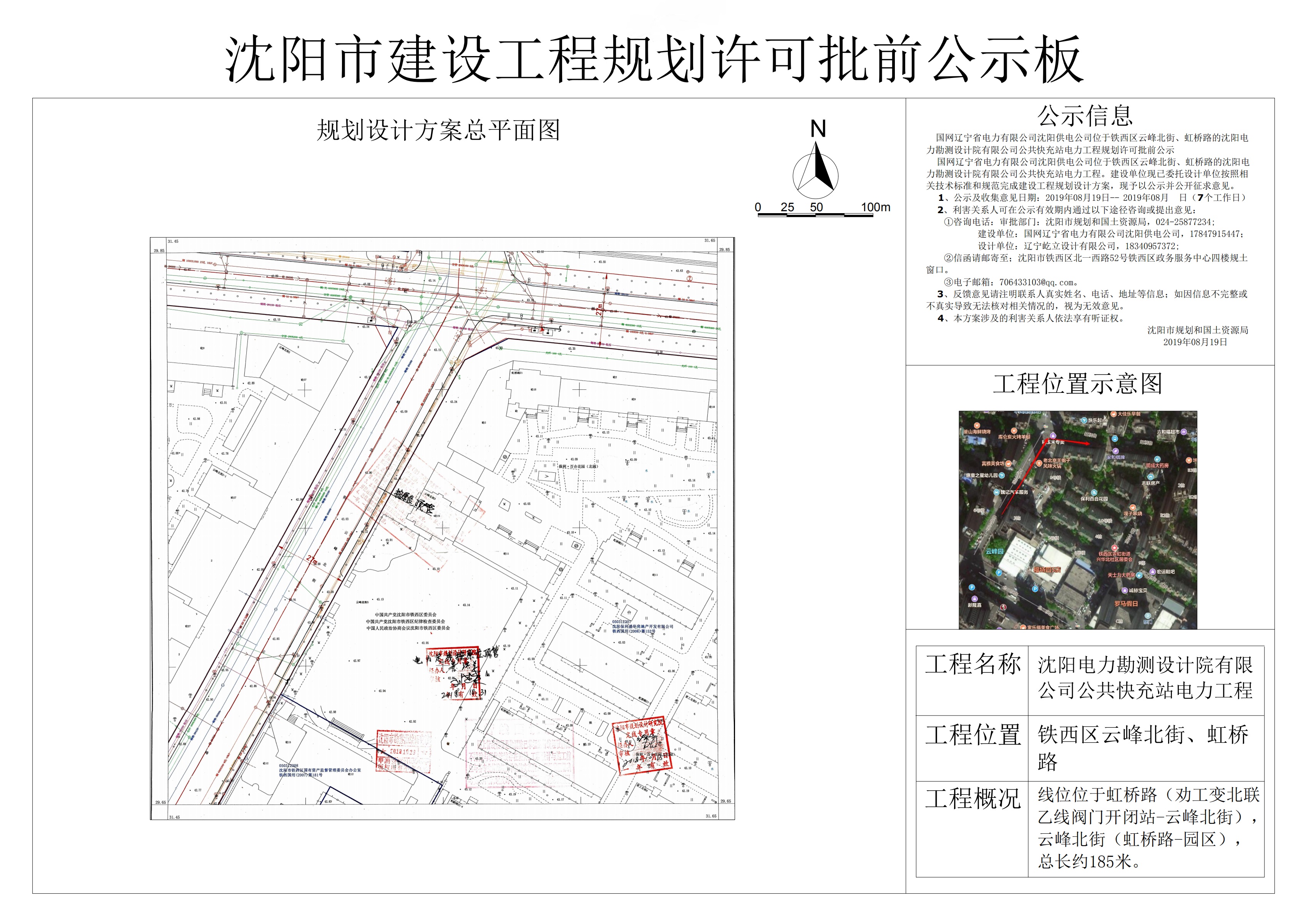 国网辽宁省电力有限公司沈阳供电公司位于铁西区云峰北街、虹桥路的沈阳电力勘测设计院有限公司公共快充站电力工程规划许可批前公示