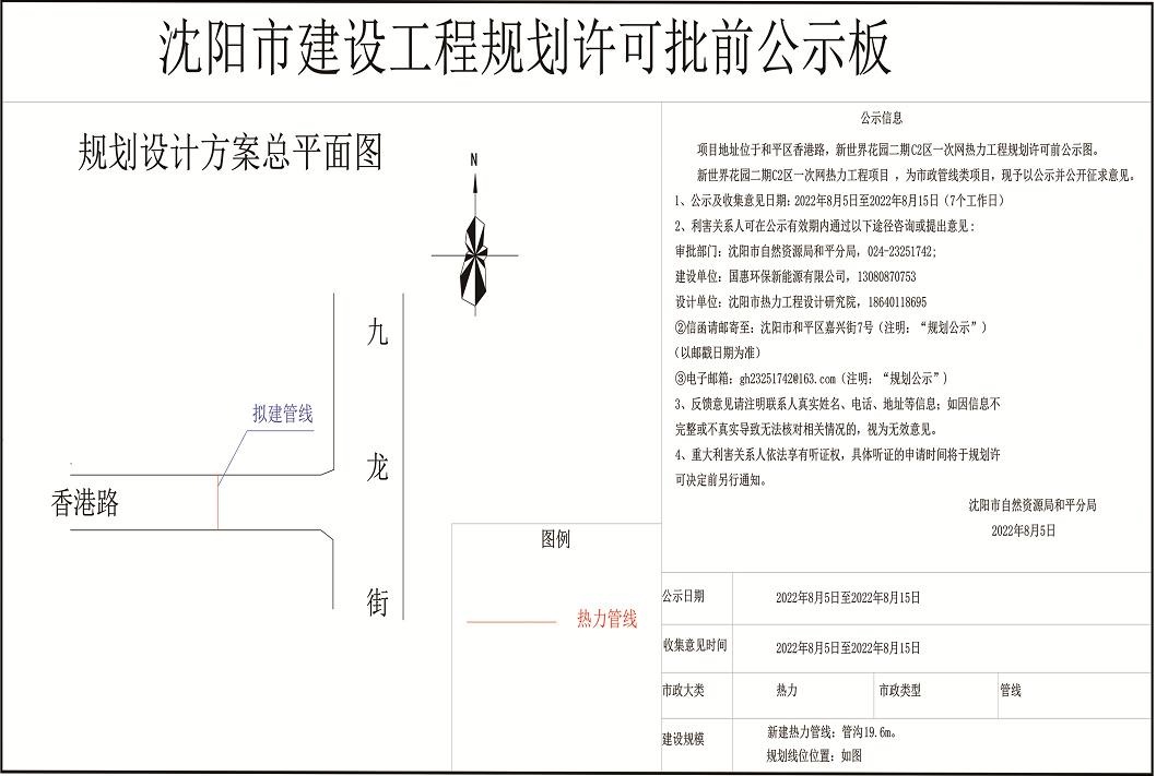 国惠环保新能源有限公司新世界花园C2区一次网热力工程项目规划许可批前公示